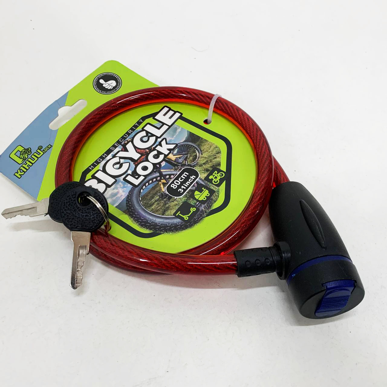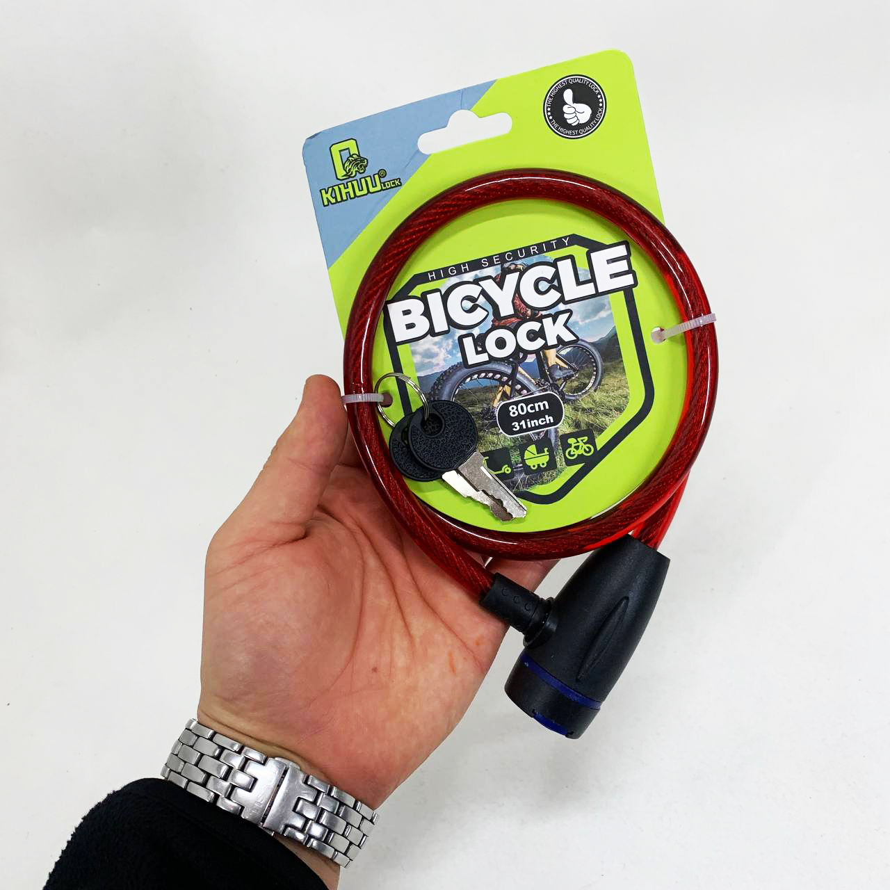 Замок велосипедний KIHUU LOCK 187, 10*80 тросовий, 2 ключі. Колір: червоний