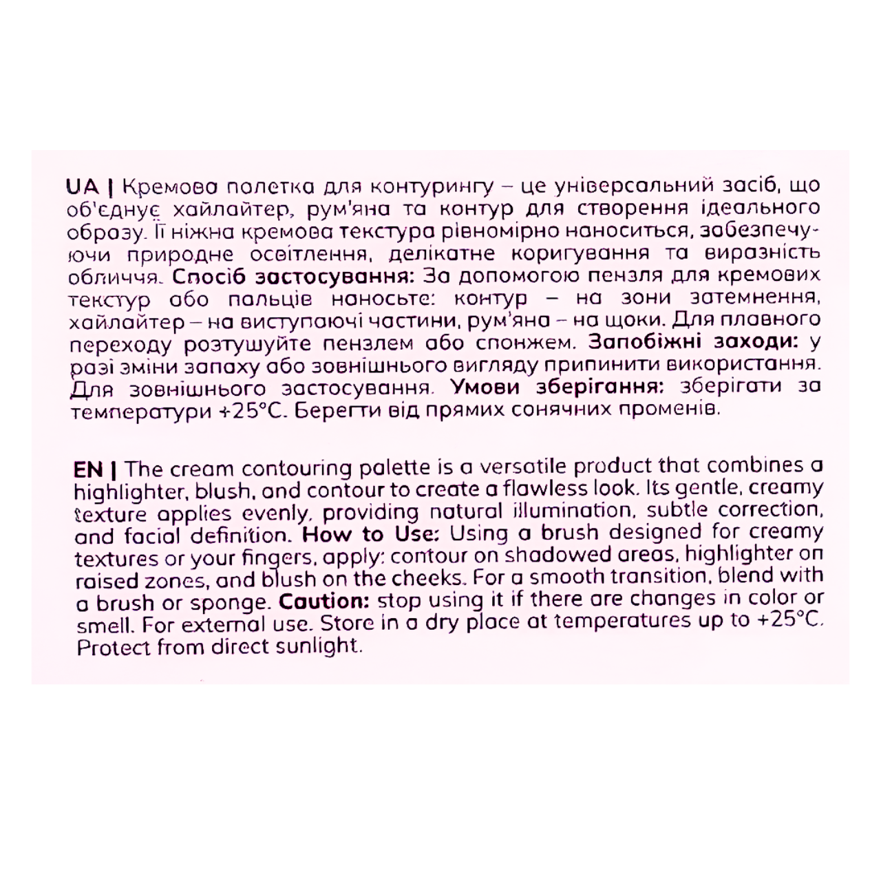 Для плавного переходу відтінків розтушуйте пензлем або спонжем.Вага продукту: 12 г