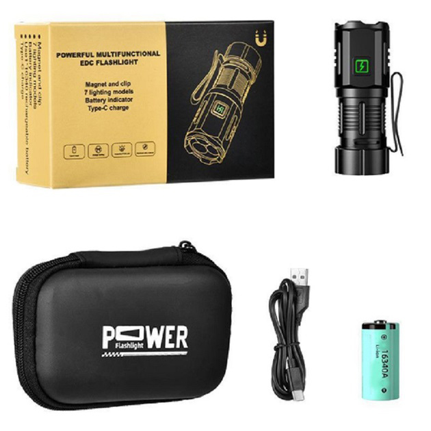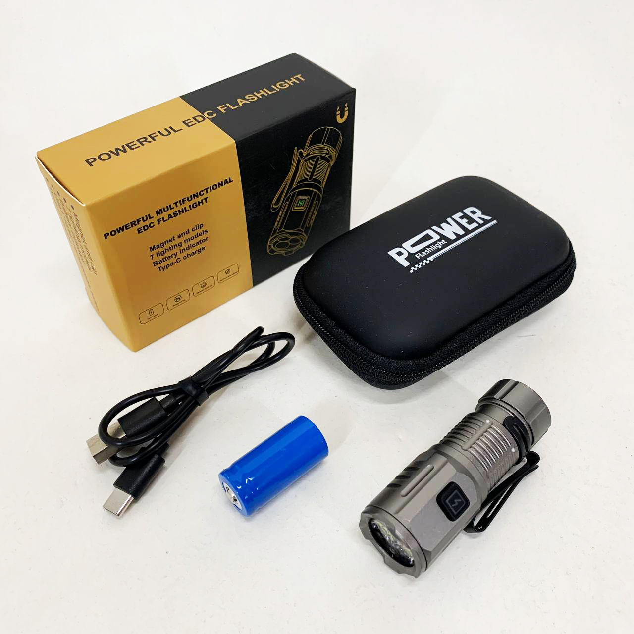 - Комплектація: ліхтар, акумулятор, чохол, кабель Type-C, коробка