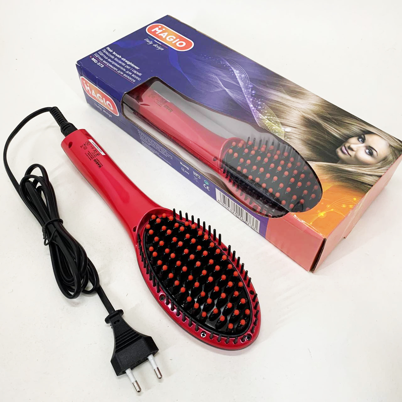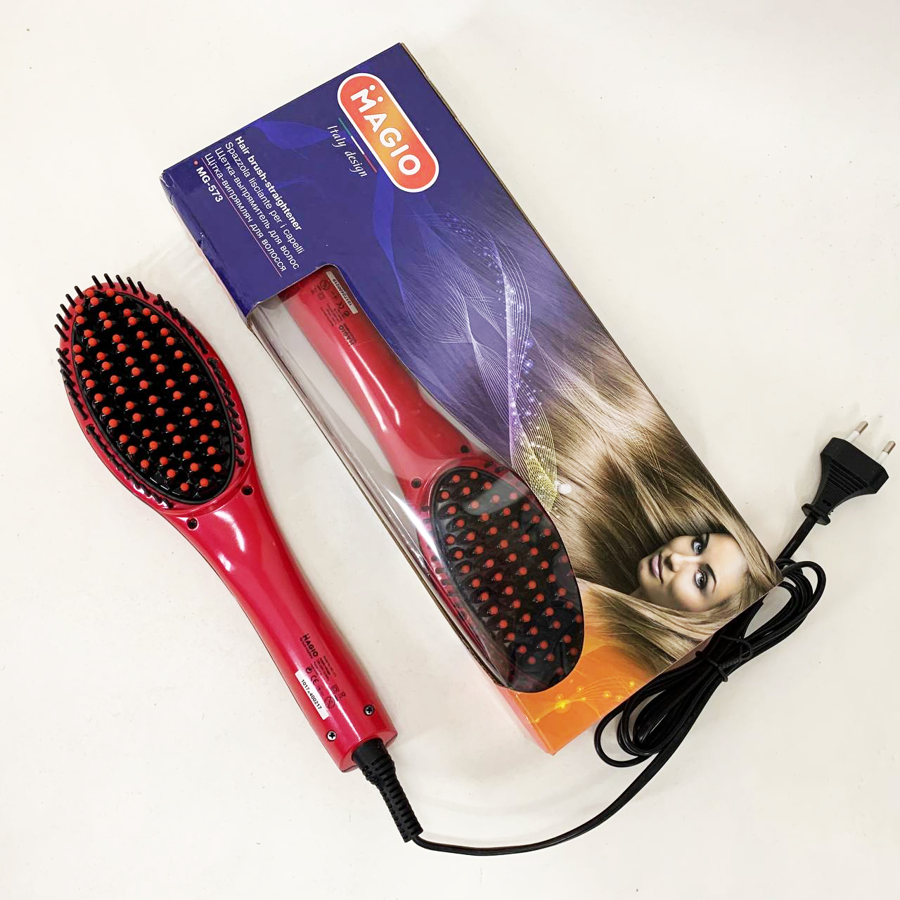 Різня-випрямляч – це шедевральна розробка у світі техніки з догляду за волоссям. З гребінцем-випрямлячем MG-573 укладання волосся стане швидким і легким процесом, що займає від сили 10 хвилин. Волосся при цьому залишається блискучим і гладким. Цей випрямляч у вигляді гребінця поєднує в собі масажну щітку для волосся та прасок, дозволяє випрямляти та розгладжувати волосся, просто розчісуючи його.