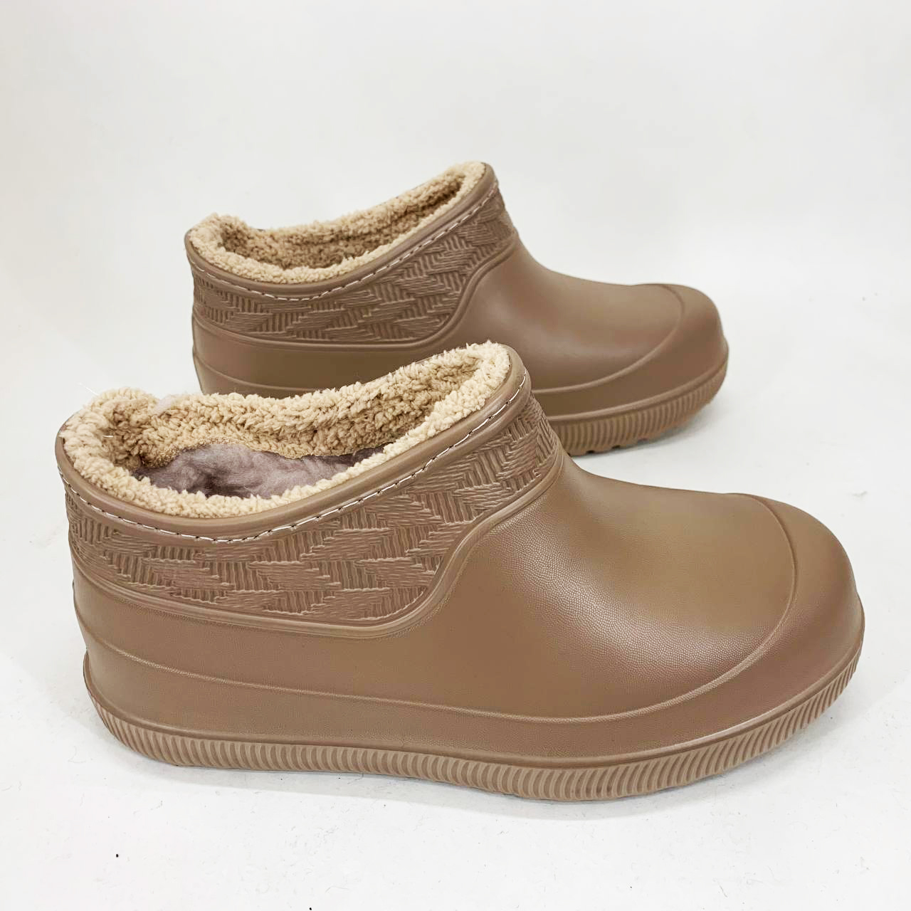 Елегантний бежевий колір та декоративна текстура у верхній частині додають виробу привабливості, роблячи його актуальним не лише для дому чи городу, а й для прогулянок у місті. Калоші легко взуваються, а невелика висота моделі робить їх зручними для щоденного користування.