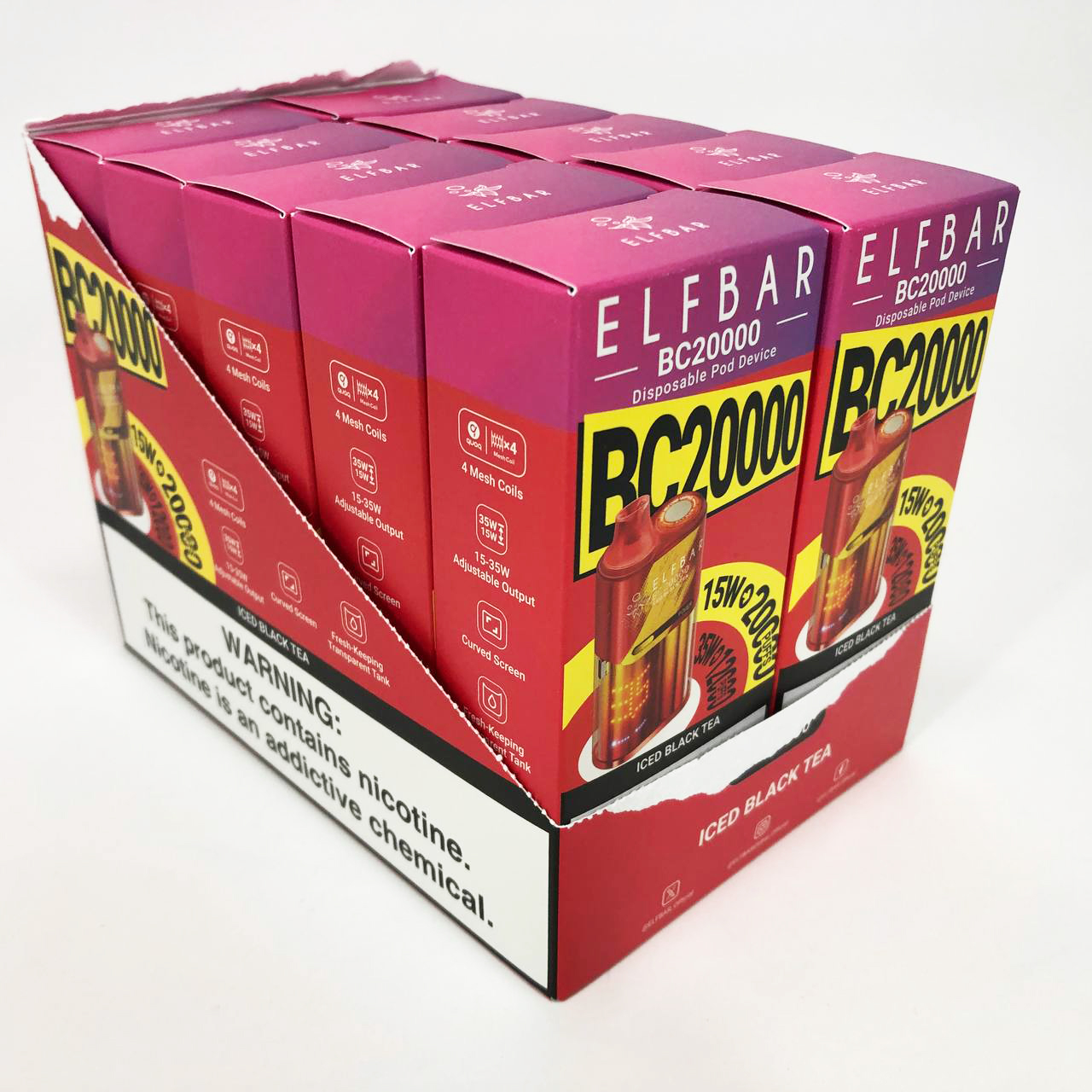 Ельф Бар BC20000 забезпечує до 20 000 використань, пропонуючи потужність до 35 Вт завдяки 4 сітчастим котушкам, які створюють щільну пару та насичені смакові відчуття.