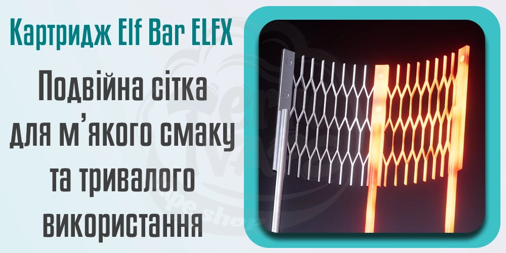 За словами виробника, картриджі Ельф Бар Ельф Ікс - це перші картриджі, які мають нагрівальний елемент у вигляді подвійної сітки. Це означає, що їхній термін служби також збільшується приблизно вдвічі, а за даними QUAQ Lab, картриджі зберігають приблизно 97% смаку протягом усього часу використання. Завдяки особливій структурі нагрівального елементу, вплив на сітку під час використання змінюватиметься в залежності від режиму роботи електронної сигарети. Коли у вас обраний режим ECО, то дві частини сітки нагріватимуться по черзі, а у турбо-режимі вони "працюватимуть" одночасно. Таким чином досягається інтенсивність і стабільність смаку, які роблять процес паріння комфортним та ще приємнішим. Подвійна сітка також забезпечує велику площу нагрівання та більш рівномірного розподілу тепла, що забезпечує м'який та насичений смак.