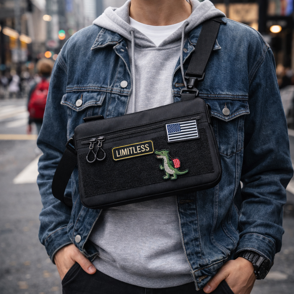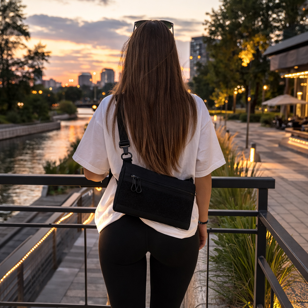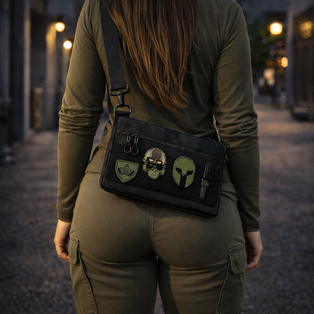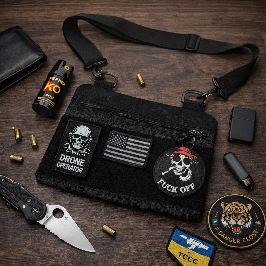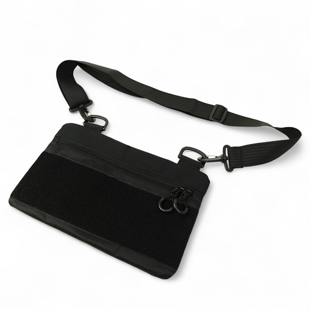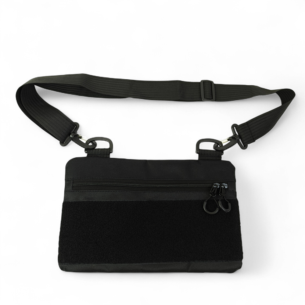 Чорний тактичний дизайн з пуллерами та регульованою міцною стропою робить сумку універсальною та стильною. Розмір 30 × 18 см — ідеальна компактність без втрати функціоналу.