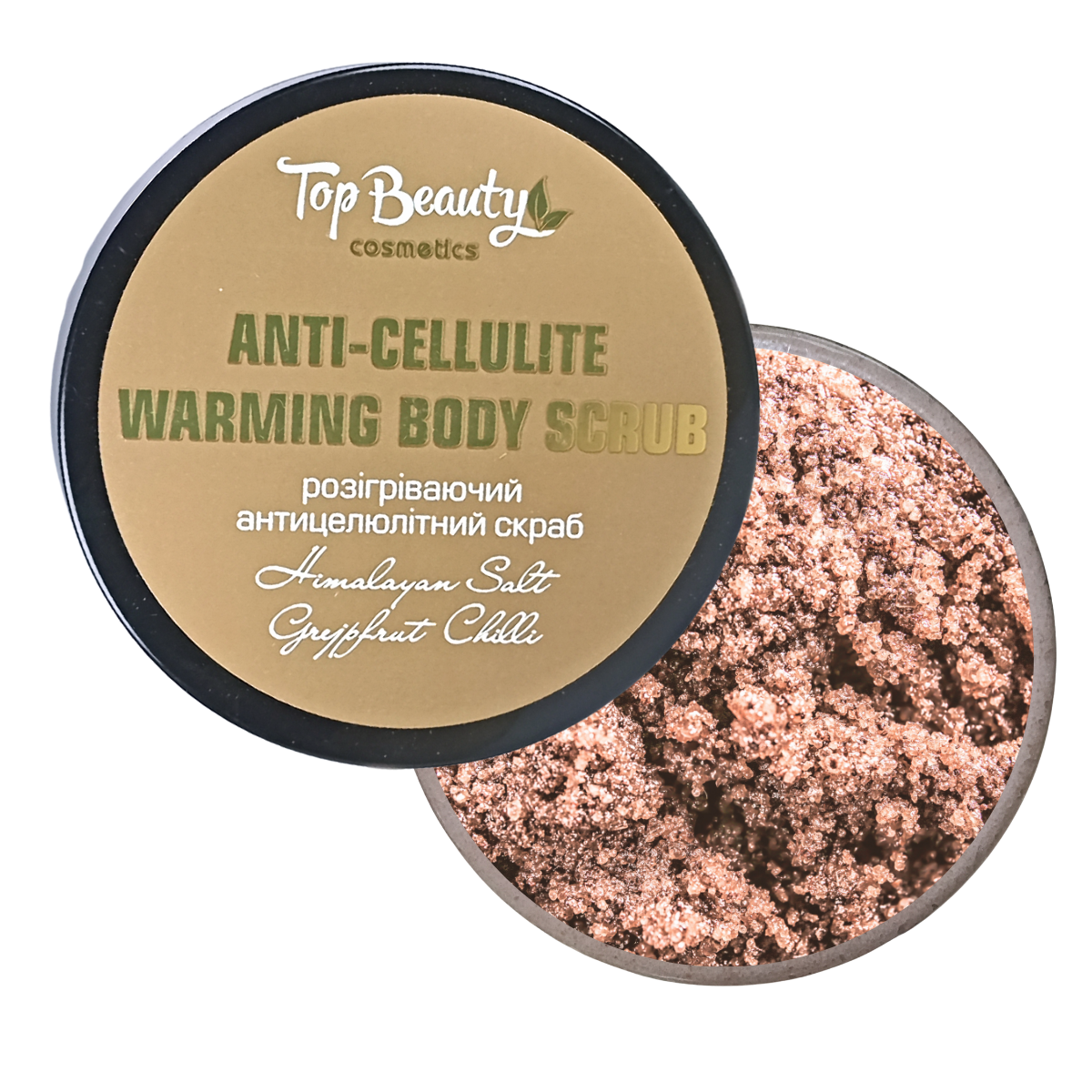 Антицелюлітний скраб для тіла Top Beauty Anti-Cellulite Warming Body Scrub Гімалайська сіль • Екстракт грейпфрута • Червоний перецьІнтенсивний антицелюлітний скраб з тепловим ефектом допомагає боротися з проявами целюліту, роблячи шкіру гладкою, пружною та доглянутою. Основу скрабу, що розігріває, становить рожева гімалайська сіль, яка ефективно відлущує відмерлі клітини, стимулює обмін речовин і сприяє спалюванню надлишкового жиру.Екстракт грейпфрута тонізує та освіжає, а червоний перець посилює мікроциркуляцію, забезпечуючи зігрівальний ефект та помітно розгладжуючи рельєф шкіри. Разом з антицелюлітною дією скраб активно покращує стан шкіри.Інші активні компоненти:масло жожоба зволожує та живить, надаючи м'якості; Д-пантенол заспокоює, знімає почервоніння та прискорює відновлення; бетаїн, ніацинамід та алантоїн підтримують гідробаланс та зміцнюють шкіру на клітинному рівні.Результат: шкіра стає гладкою, пружною, підтягнутою і неймовірно ніжною на дотик.Як користуватися:Нанесіть скраб на попередньо очищену вологу шкіру, помасажуйте круговими рухами та змийте теплою водою.Об'єм: 250 мл