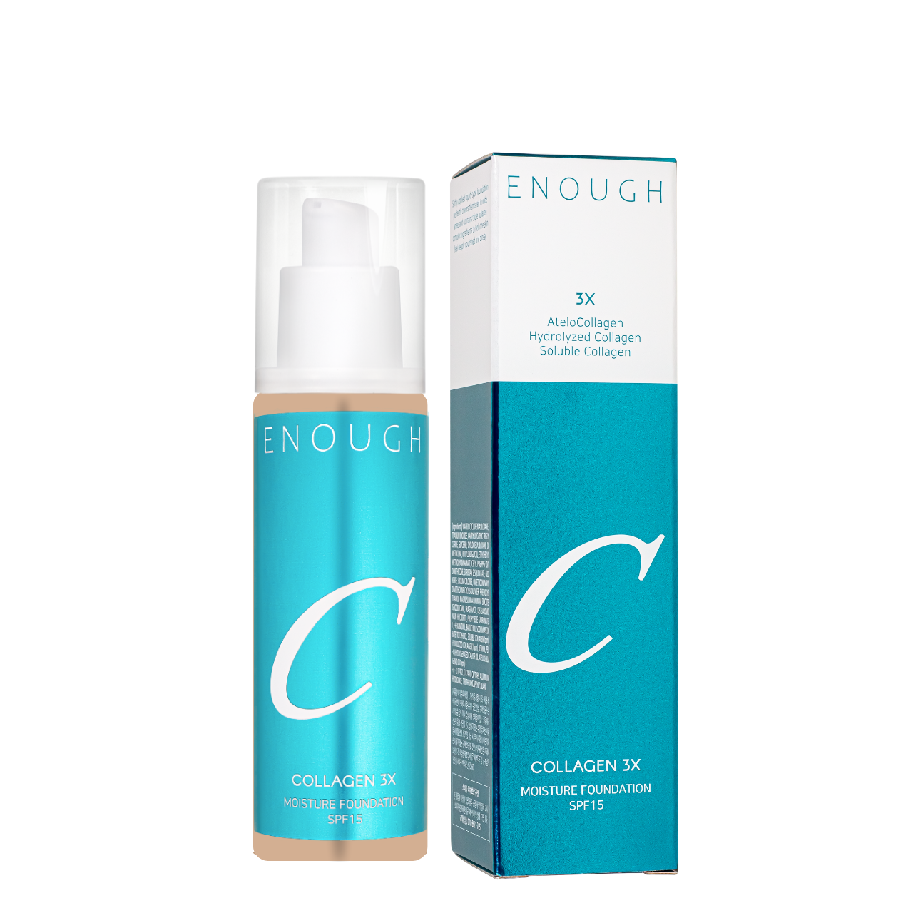 Тональний крем з потрійним колагеном Enough Collagen 3x Moisture Foundation SPF 15Тональний крем від бренду Enough - бездоганна основа для створення будь-якого образу, де є місце досконалості, шарму, природної краси. Делікатно маскуючи недоліки на обличчі, Collagen 3x Moisture Foundation SPF15 помітно вирівнює відтінок та візуально розгладжує рельєф епідермісу. Бьюті-продукт захищає його від впливу зовнішніх факторів і перешкоджає видозміні макіяжу, оскільки має підвищену стійкість. Він підтримує пружність, еластичність шкіри, уповільнює формування передчасних вікових змін, наповнюючи її структуру колагеном, гіалуроновою кислотою, бета-глюканом.Особливості Collagen 3x Moisture Foundation SPF15 від Enough:представлений палітрою натуральних відтінків;