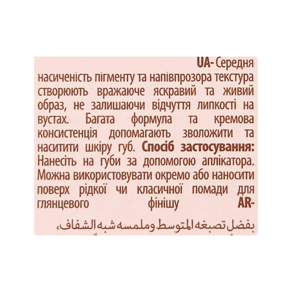 Блиск для губ Shine Lipgloss із шимером Neverti Shine Lipgloss — сяйво, яке говорить за вас!Середня насиченість пігменту та напівпрозора текстура шимерного блиску для губ від Neverti створюють приголомшливо живий і природний образ. Кремова консистенція зволожує й живить шкіру губ, залишаючи їх м'якими та гладкими впродовж усього дня. Вишуканий шимер надає губам візуального об'єму та спокусливого сяйва, роблячи їх ще виразнішими.Зручний аплікатор забезпечує точне та комфортне нанесення, а легка формула не розтікається й не липне.У палітрі Neverti Shine Lipgloss — багатий вибір відтінків: від ніжних рожевих і персикових до насичених рожево-коричневих. Виберіть свій ідеальний колір і створіть макіяж, який підкреслить вашу індивідуальність.Neverti Shine Lipgloss — блиск, який робить ваш образ бездоганним.Як використовувати:Нанесіть блиск за допомогою аплікатора на суху шкіру губ.