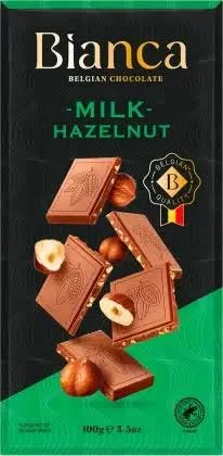 Ніжний молочний шоколад Bianca Milk Hazelnuts — це класичне поєднання м’якого, вершкового шоколаду та хрустких шматочків лісового горіха. Кожен шматочок дарує збалансований смак солодощі, горіхової насолоди й натурального какао.