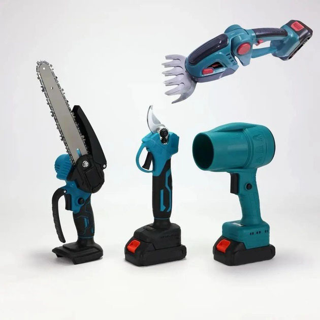 Акумуляторний універсальний садовий набір 6 в 1 Секатор Міні-пила Триммер Повітродувка Подовжувач Кущоріз