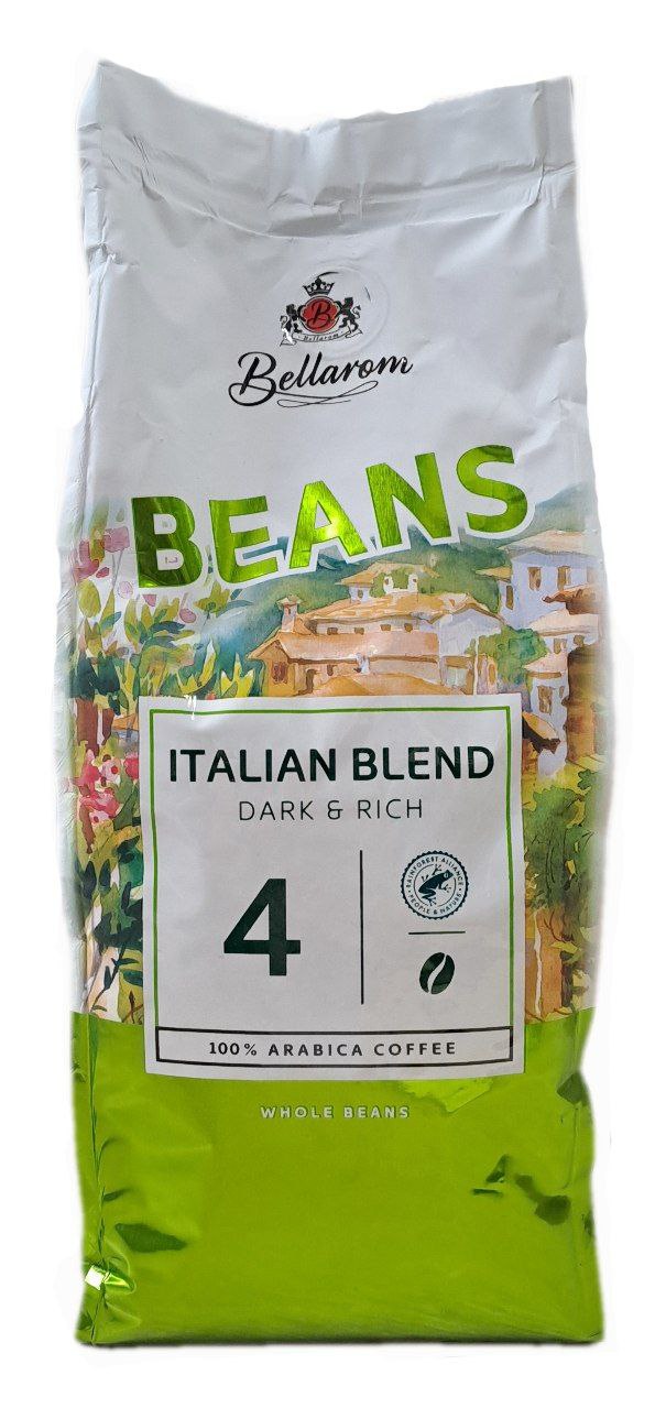 Кава в зернах Bellarom Italian Blend 100% арабіка, ступінь обсмажування 4. Italian Blend кава обсмажена в італійському стилі - насичена, густа, з легкими нотами какао та прянощів. Це купаж добірних зерен арабіки з різних регіонів, має яскравий збалансований смак - м'який на початку і виразний у післясмаку. Універсальна кава для будь-яких способів заварювання – від джезви до ріжкової кавоварки. Справжнє італійське задоволення у німецькому виконанні.