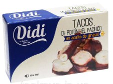 Восьминіг в Соняшниковій Олії Діді Tacos de Poton Del Pacifico en aceite de Girasol Didi 111 гр. Іспанія – дуже смачний, корисний для організму людини продукт харчування. М'ясо є джерелом натурального білка, тіаміну, рибофлавіну, фосфору, калію та інших мікроелементів, які благотворно впливають на зміцнення імунітету, оновлення клітин, функціонування органів зору та підшлункової залози, запобігання старіння.