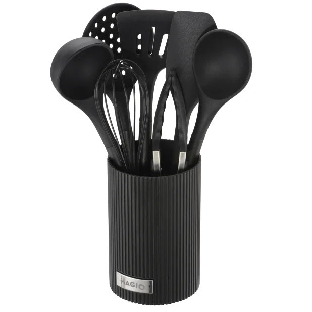 Набір кухонний MG-1128 — Незамінний надійний помічник на вашій кухні, складається з 7 предметів для кожної господині та відерце для зберігання. На дні відерця є отвір, який забезпечує сухість усіх аксесуарів, а також запобігає утворенню слизу та плісняви.