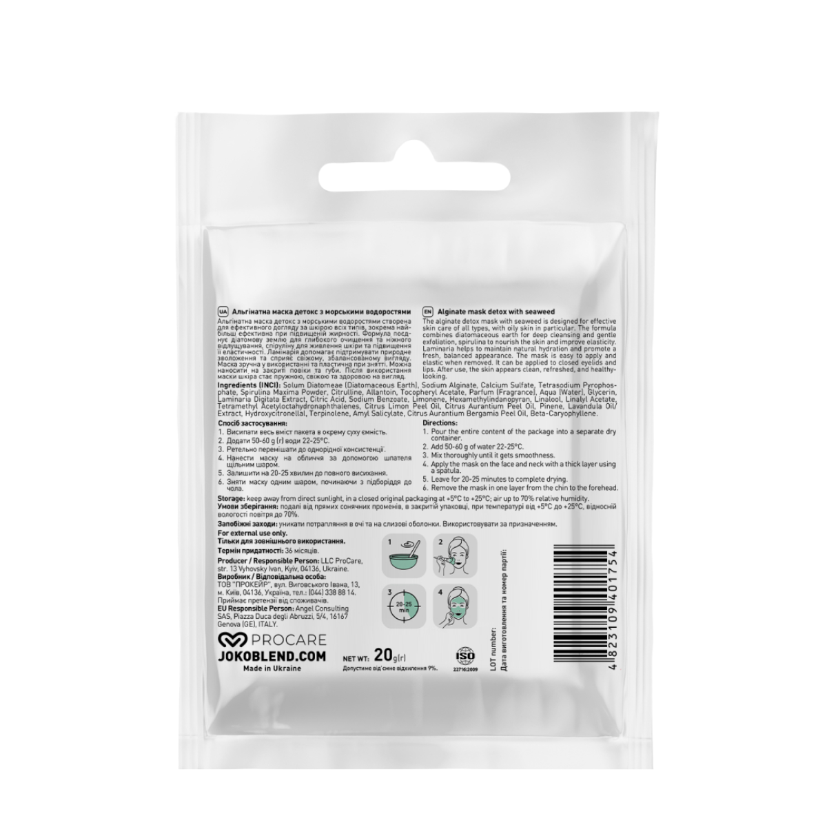 Альгінатна маска для обличчя Joko Blend Детокс із морськими водоростями, 20 г. Зображення №2