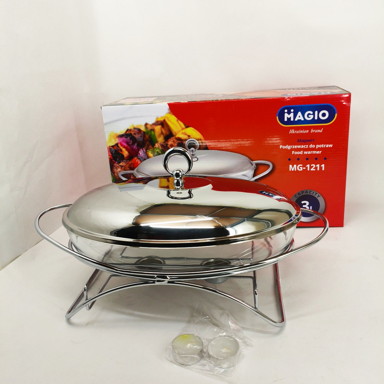 Подаруйте своїм стравам неперевершену теплоту та смак із мармітом Magio! Овальний марміт об’ємом 3 літри – ідеальне рішення для збереження гарячих страв на вашому столі, забезпечуючи комфорт та зручність під час будь-якого святкового обіду чи вечері.
