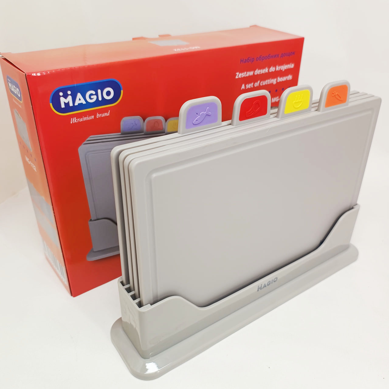 Набір MG-1132с стане незамінним помічником у професійних і домашніх умовах для обробки широкого спектру продуктів. Дошки дозволяють розділяти обробку м’яса, риби, овочів і гарячих страв, що особливо важливо для дотримання санітарних норм і запобігання змішуванню смаків і запахів. Підставка спрощує зберігання і забезпечує швидку доступність інструменту, що зручно при інтенсивній роботі на кухні.