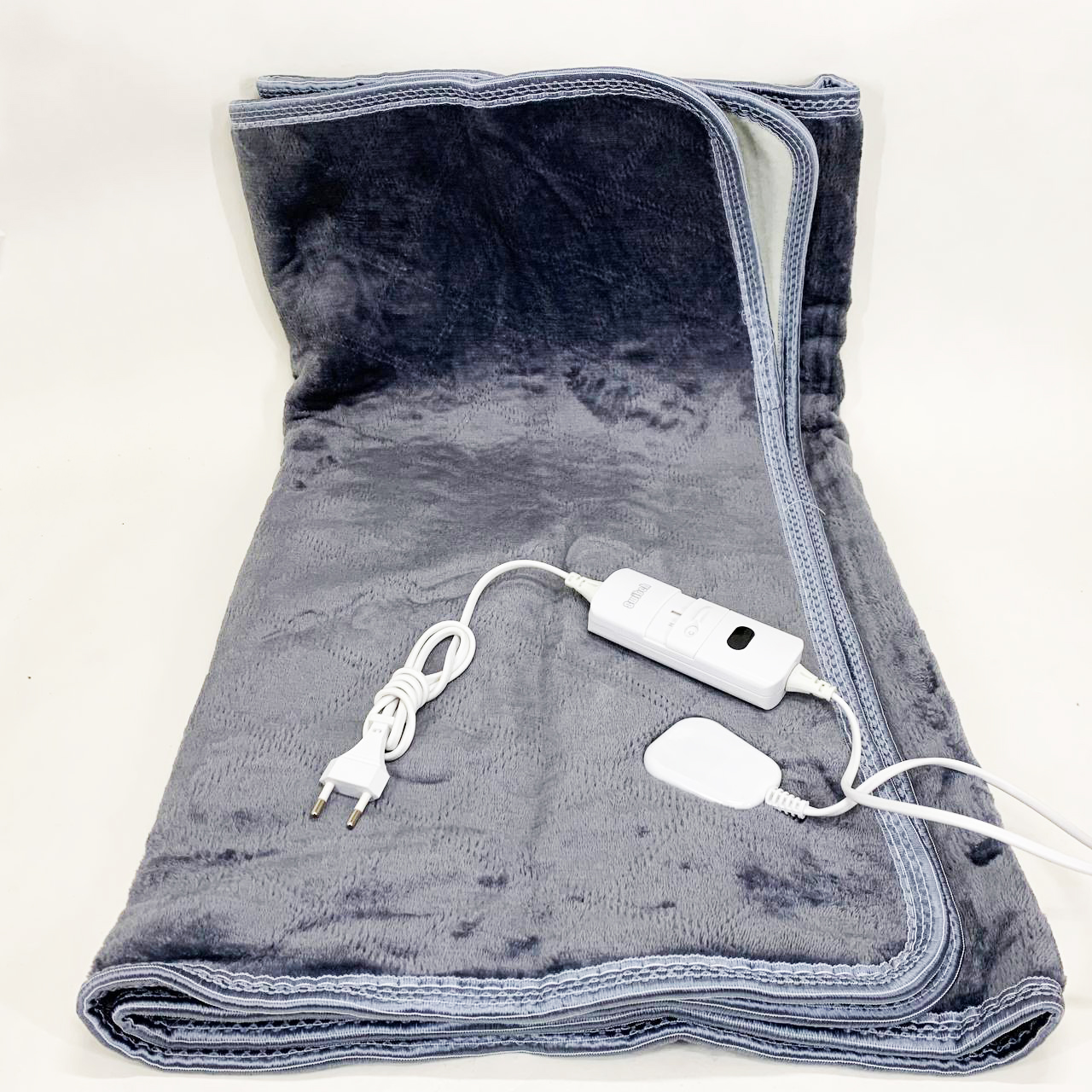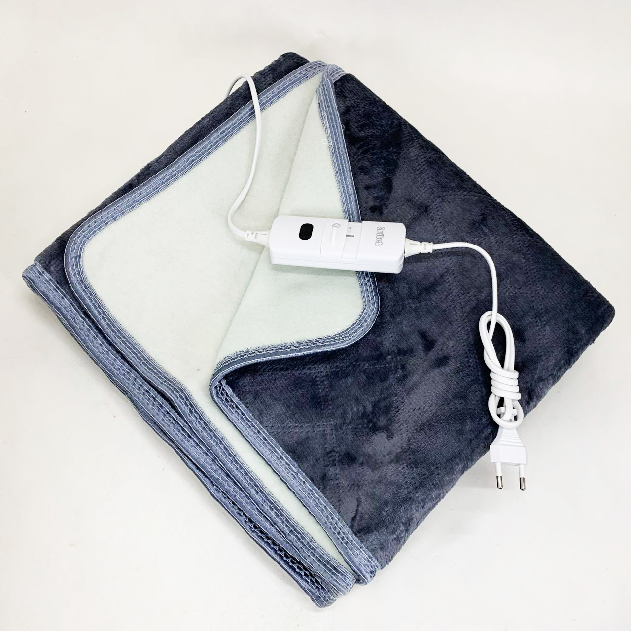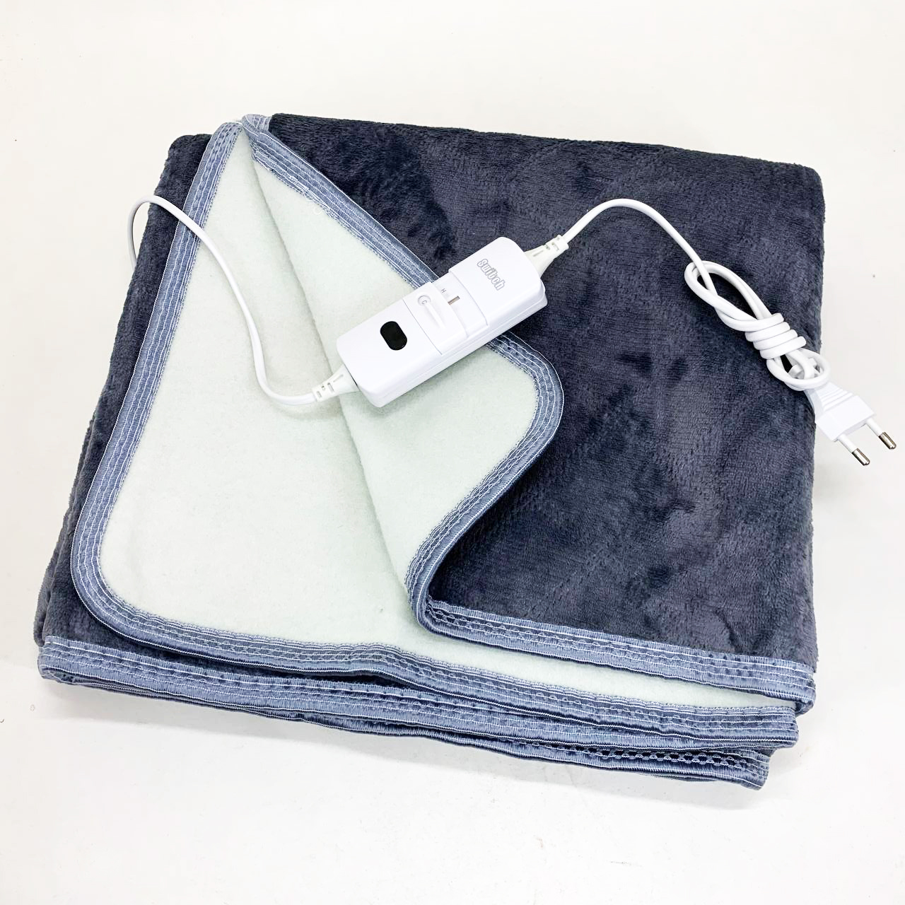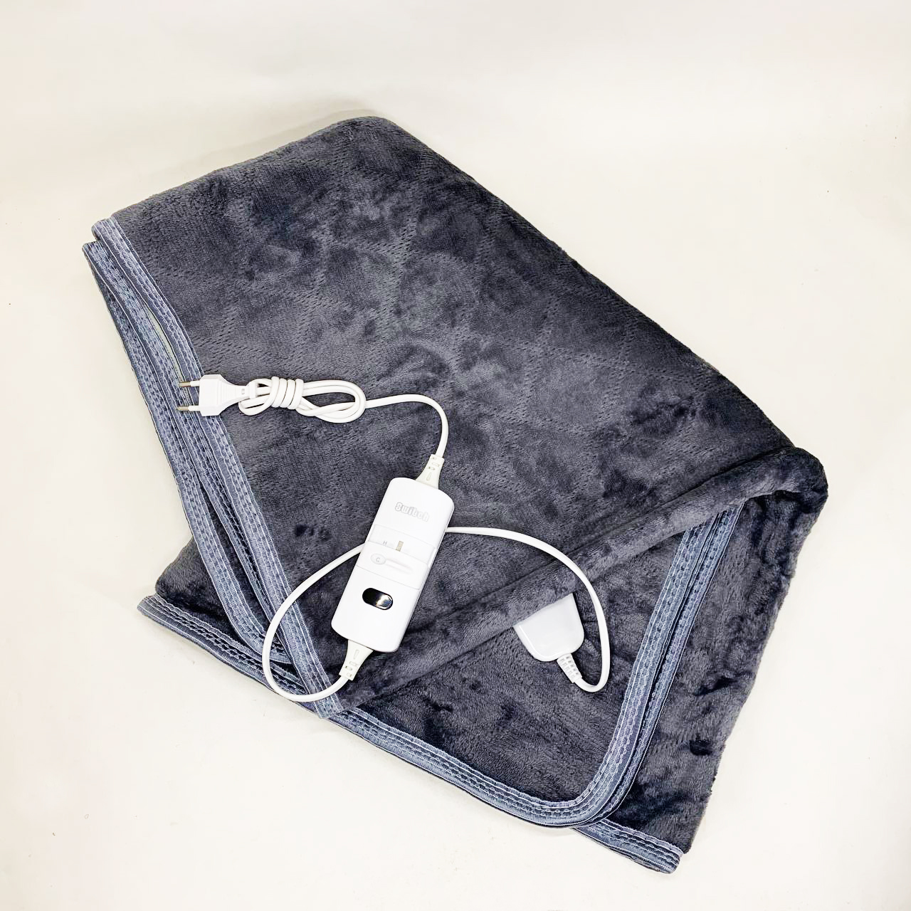 Електропростирадло односпальне 70х150 см тепле електро простирадло ковдру з підігрівом в клітинку з регулятором сірий