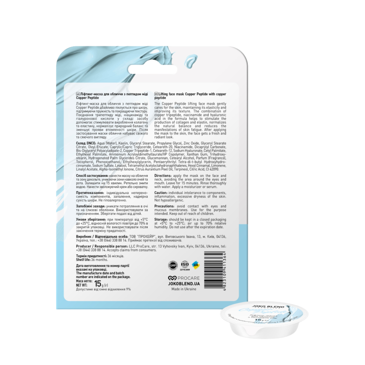 Ліфтинг-маска для обличчя Joko Blend Copper Peptide з пептидом міді 15 г. Зображення №2