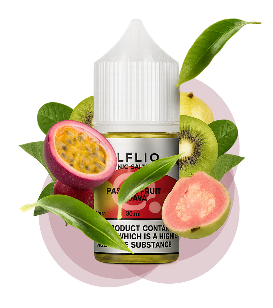 Ківі Маракуя Гуава — екзотичне поєднання кислуватого ківі, яскравої маракуї та солодкої гуави для освіжаючого фруктового вибуху.