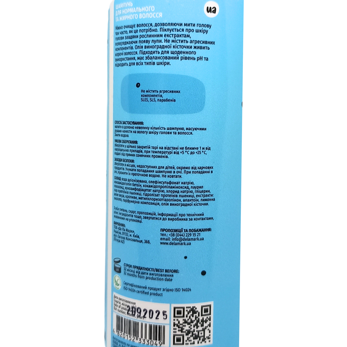 За потреби повторіть процедуру.СкладВода, м'які мийні компоненти, екстракт алое вера, олія виноградної кісточки, протеїни пшениці, бетаїн, гліцерин, лимонна кислота, допоміжні кондиціонувальні компоненти. Без SLS/SLES, силіконів і парабенів.Об'єм і форма випуску300 мл, флакон зі зручним дозатором.