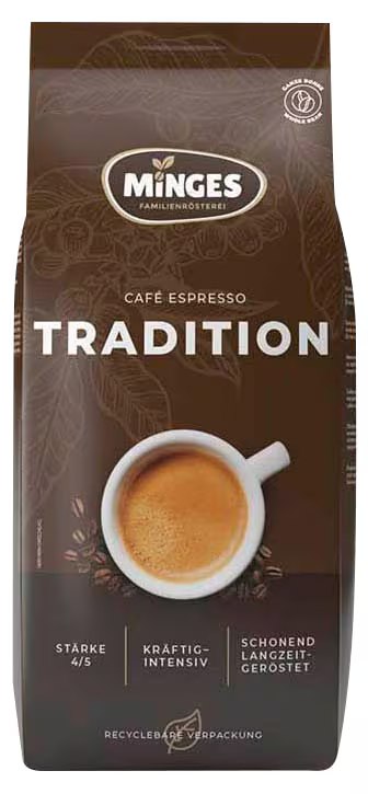 Minges Tradition, 1 кг — класична німецька кава, створена за традиційними рецептами обсмаження. Поєднання високоякісних зерен арабіки та робусти забезпечує насичений смак із легкою гірчинкою та приємною кремовістю. Ця кава має збалансований аромат із відтінками горіхів і карамелі, що робить її універсальною для будь-якого способу приготування — від еспресо до кави з молоком.