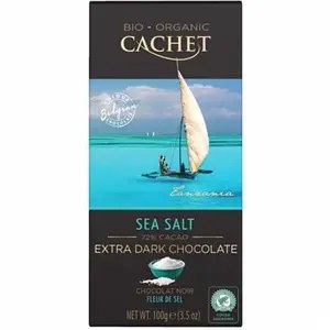 Cachet Bio Organic Dark Chocolate Sea Salt, 90 г — органічний чорний шоколад преміум-класу з яскравим смаковим акцентом морської солі. Виготовлений із сертифікованих органічних інгредієнтів, він поєднує насичений какаовий смак із делікатною солонуватою ноткою, що підкреслює глибину та аромат шоколаду. Ідеальний вибір для тих, хто цінує натуральність, чистий склад та вишукані гастрономічні поєднання.