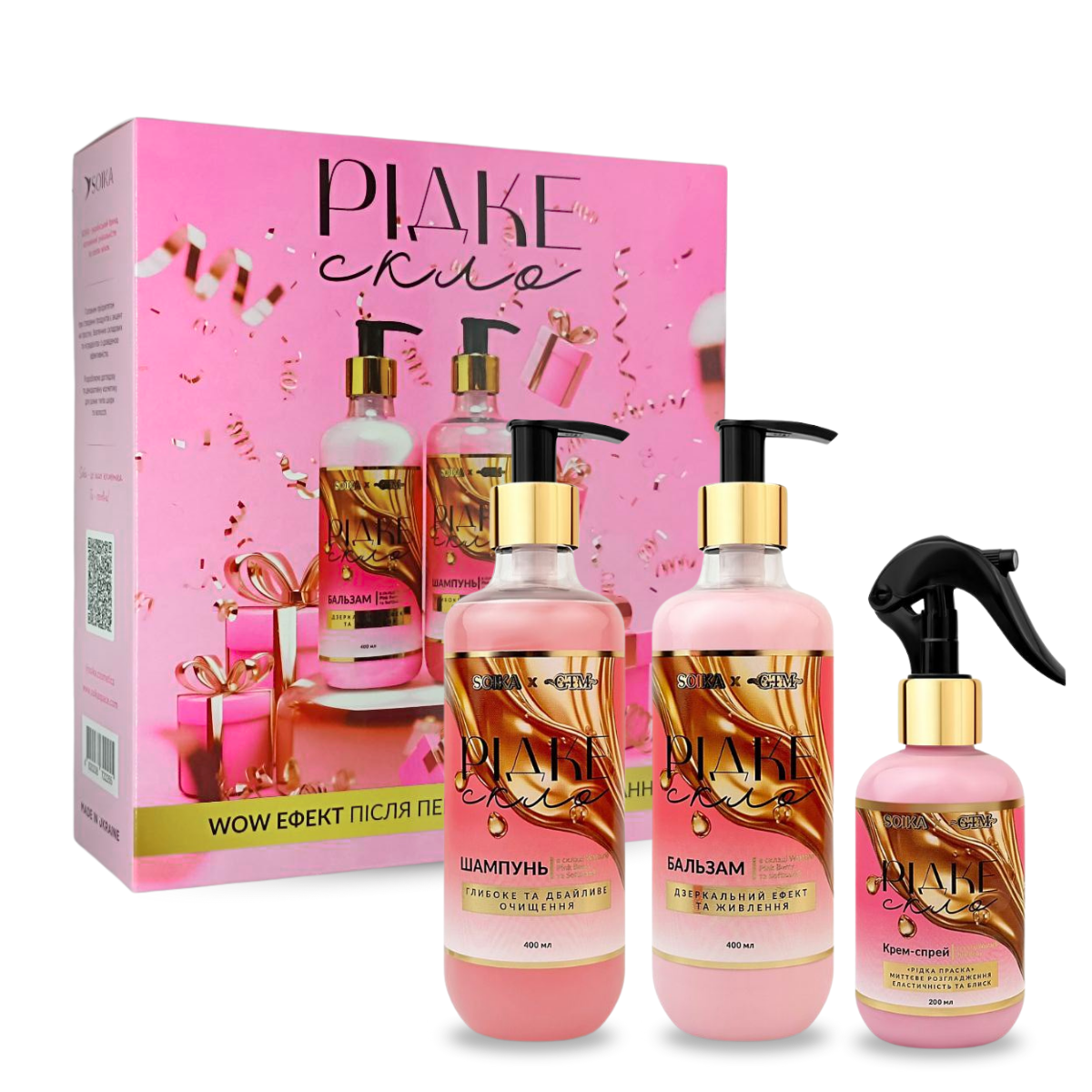 Подарунковий набір для волосся Soika "Рідке скло" 3 в 1