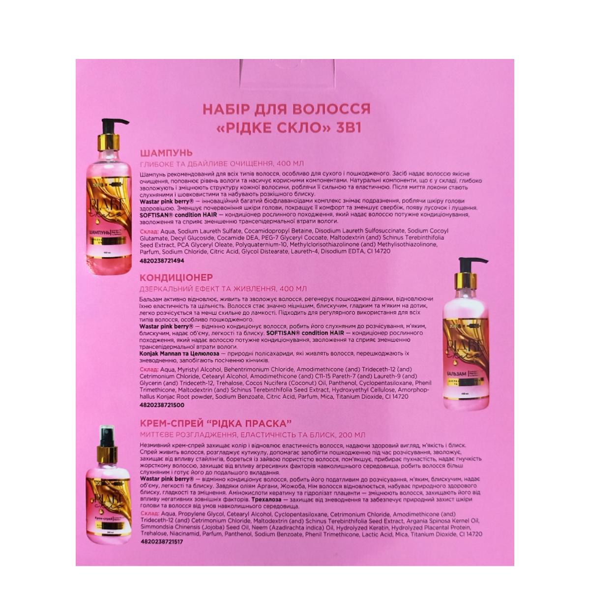 Склад набору Шампунь|Бальзам|Крем для волосся