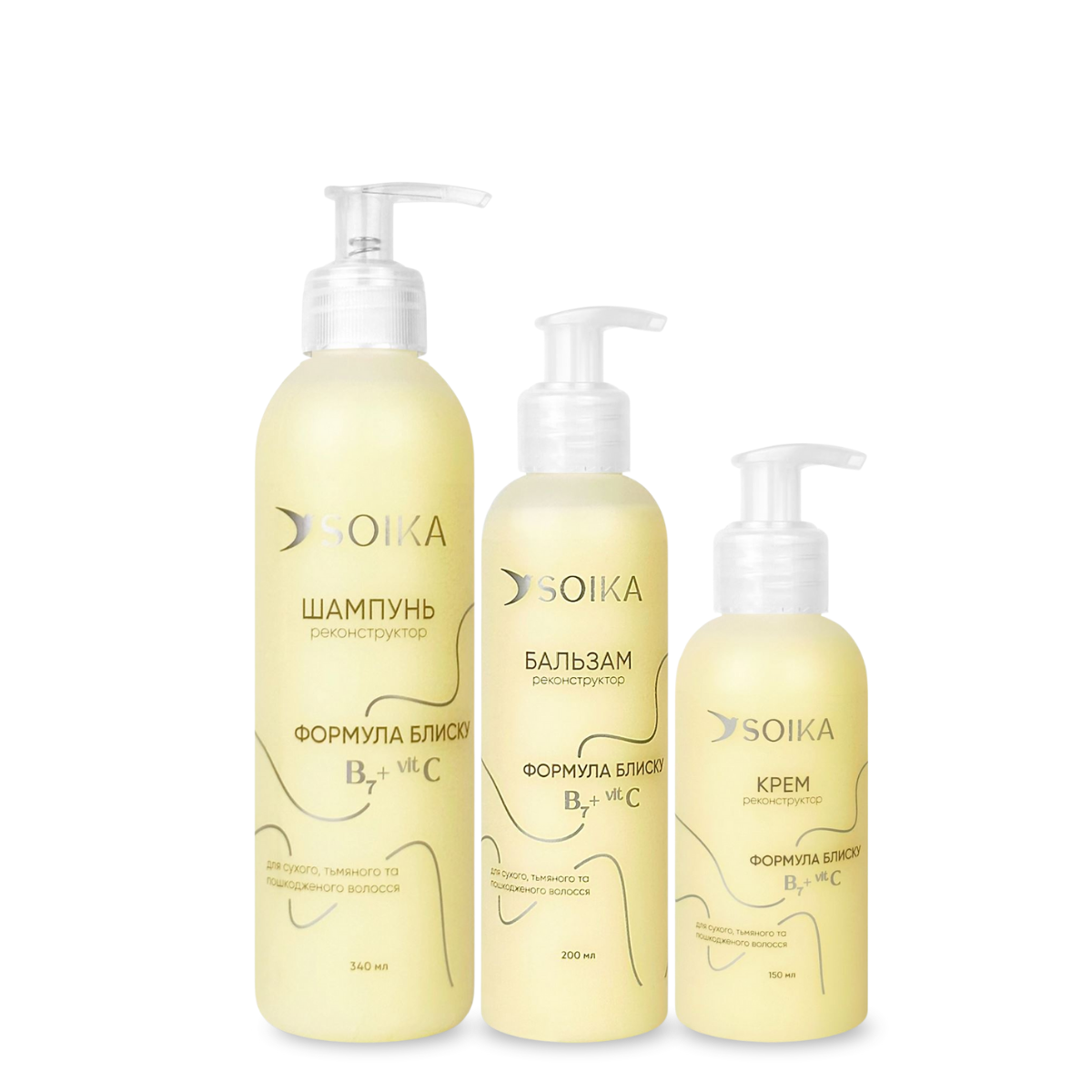 Подарунковий косметичний набір для волосся Soika «Формула блиску» 3 в 1 — шампунь, бальзам, кондиціонерПодарунковий набір Soika «Формула блиску» — це повноцінний ритуал догляду, створений для відновлення, зволоження й надання дзеркального сяяння волоссю. Продукти містять біотин та вітамін С та працюють комплексно: очищують, живлять, відновлюють та захищають волосся від пошкоджень.Результат помітний одразу після першого використання. Ваше волосся з кожним застосуванням цих б'юті-засобів стає більш гладким, м’яким і блискучим.Основні властивості:відновлює структуру волосся та зменшує ламкість;