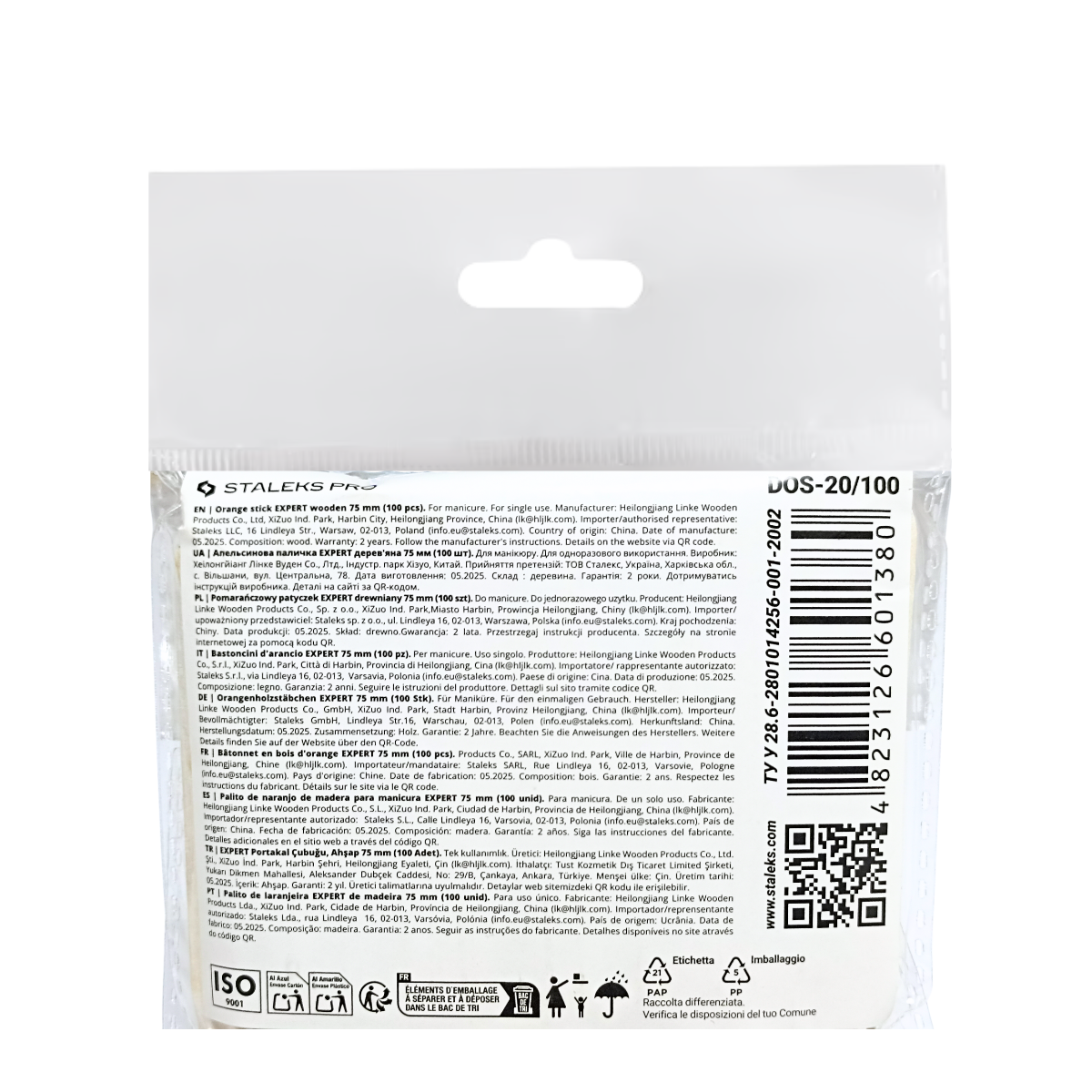 Апельсинова паличка для манікюру Staleks Pro DOS-20/100, 75 мм, 100 шт.Апельсинові палички Staleks Pro DOS-20/100 - це незамінний інструмент для професійного та домашнього манікюру. Вони допомагають акуратно відсунути кутикулу, очистити нігтьову пластину та виконати дрібні корекції під час покриття гель-лаком. Завдяки натуральному дереву палички безпечні, гігієнічні та зручні в роботі.Основні властивостівиготовлені з натурального дерева, що забезпечує безпечний контакт зі шкірою;