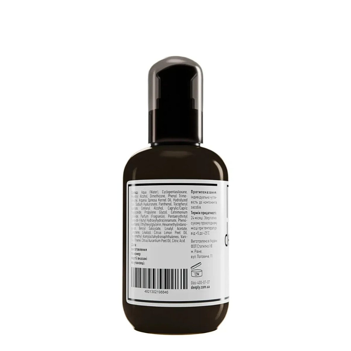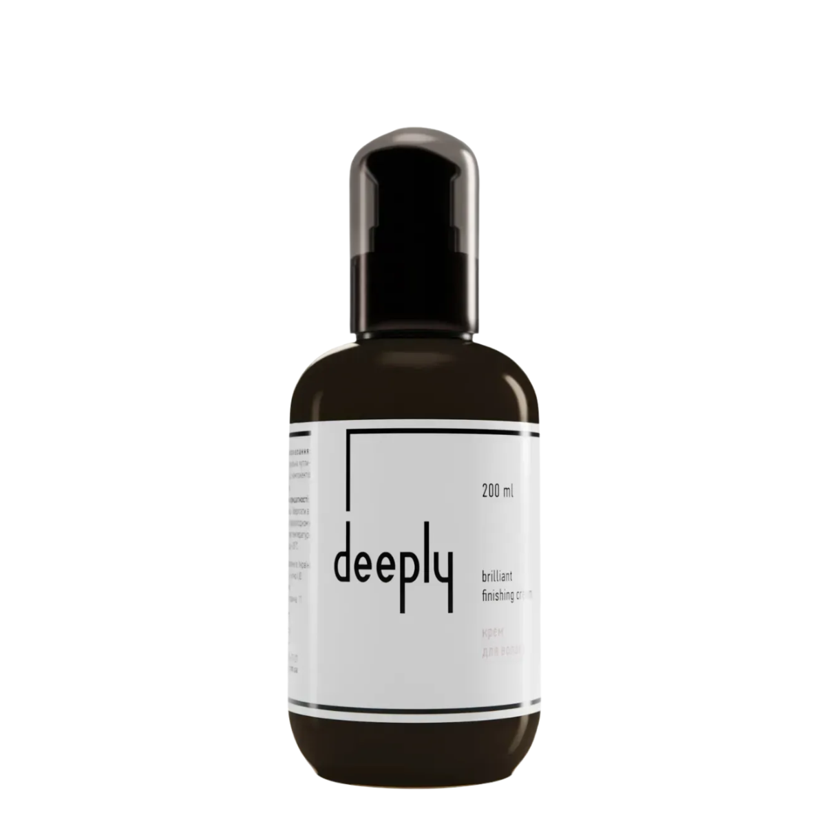 Професійний крем для блиску волосся deeply brilliant finishing cream незмивний 200 млDeeply Brilliant Finishing Cream — це професійний незмивний фінішний крем для волосся, створений як завершальний етап процедури холодного відновлення. Засіб забезпечує інтенсивний блиск, згладжування й дисципліну локонів, зміцнює структуру та захищає волосся від зовнішніх впливів. Формула з гідролізованим шовком робить волосся м'яким, еластичним і слухняним, а також надає ефект доглянутого салонного фінішу.Основні властивостізгладжує волосся, усуває пухнастість і робить його слухняним; надає інтенсивний сяйливий блиск і ефект доглянутого фінішу; зміцнює структуру волосся й підвищує його еластичність; захищає від негативного впливу довкілля; виконує функцію термозахист, зберігаючи здоровий вигляд волосся під час сушіння феном і укладання прасками; ідеально завершує процедуру холодного відновлення разом із deeply cold keramino і deeply basic mask.Активні компонентиЯк працюють активи "діамантового" крему для волосся від Deeply:гідролізований шовк — забезпечує шовковистість, м'якість і підвищену еластичність волосся; поживні компоненти — підтримують гладкість і зміцнюють структуру локонів; захисні полімери — працюють як термозахист і бар'єр від зовнішніх чинників.Кому підходитьЗасіб ідеально підходить:для тьмяного та сухого волосся, що потребує блиску; для неслухняного, пухнастого або пористого волосся; для волосся після процедури холодного відновлення; для тих, хто потребує термозахисту під час щоденного укладання волосся.Ефект від використанняРезультат, якого варто очікувати від застосування професійного крему з догляду за волоссям від Deeply:інтенсивний блиск і гладкість; слухняні, м'які та еластичні локони; зменшення пухнастості й чіткіший контур укладання; захищене волосся з ефектом професійного догляду.Спосіб використанняНанесіть невелику кількість крему на вологе волосся. Рівномірно розподіліть за допомогою гребінця по всій довжині, приділяючи особливу увагу кінчикам. Висушіть феном, використовуючи браш або гребінець для створення бажаної форми.Об'єм і форма випуску:Флакон 200 мл.