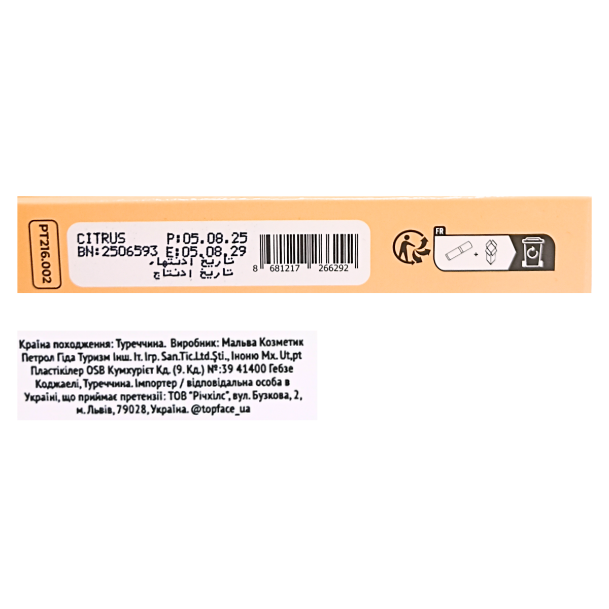 Олія для збільшення об'єму губ TopFace Lip Glow Oil Plump Effect, 4 г (PT216), 02 Citrus Цитрусовий аромат