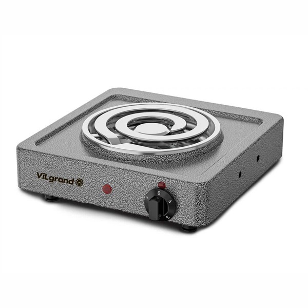 Електроплита ViLgrand VHP161D обладнана однією конфоркою потужністю 1000 Вт і управляється поворотним регулятором потужності.