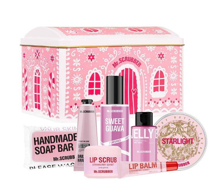 Подарунковий набір косметики для жінок Sweet Candy House Mr.Scrubber, 7 продуктів: скраб, батер, гель, мило, сіль, бомбочки, шиммер - ідеальний подарунок для догляду за шкірою