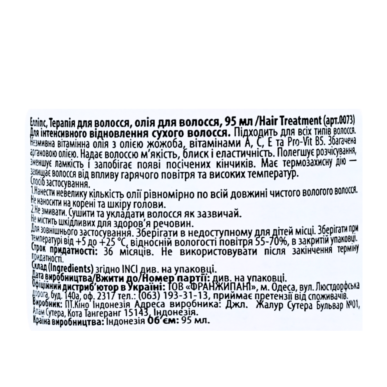 волосся легко розчісується та не сплутується.Спосіб використанняНанесіть невелику кількість олії на чисте вологе або сухе волосся.