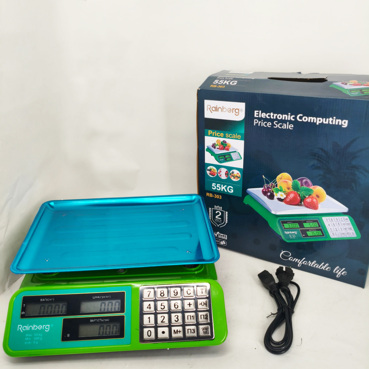 Ваги електронні торговіRainberg RB-303, 55 кг. Нова модель із металевою клавіатурою, яка має довгий термін служби.