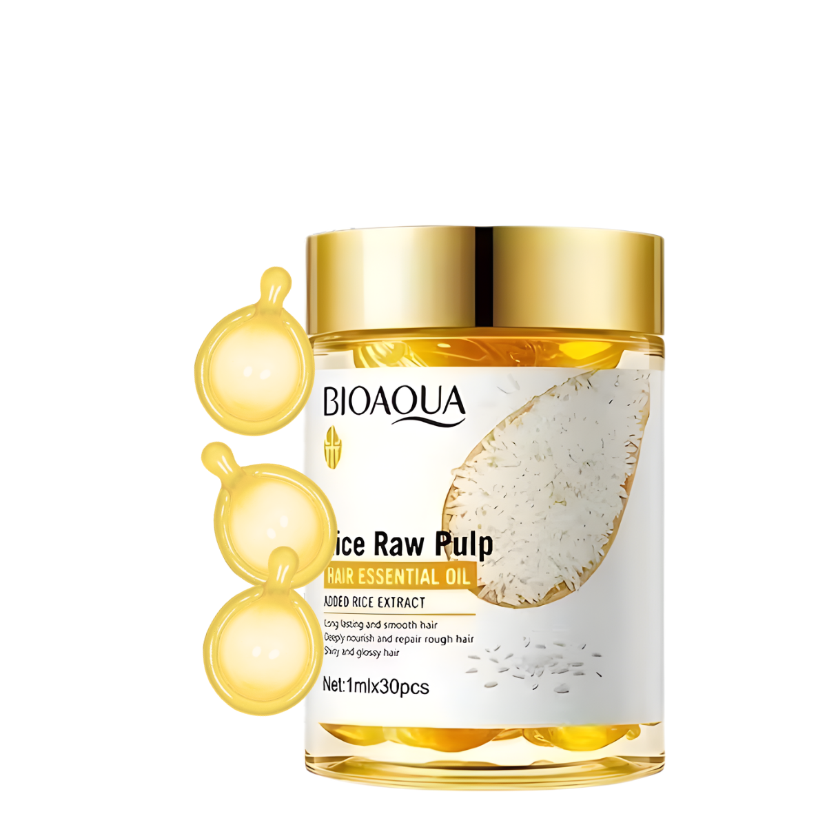Капсули для відновлення волосся Bioaqua Rice Raw Pulp з екстрактом рисуКапсули для волосся Bioaqua Rice Raw Pulp з екстрактом рису забезпечують інтенсивне живлення, глибоке зволоження та відновлення навіть сильно пошкоджених і сухих локонів. Формула робить волосся гладким, блискучим і слухняним уже після кількох застосувань. Засіб полегшує розчісування, усуває сплутування та повертає локонам природне сяйво. Олія не залишає відчуття жирності навіть на тонкому волоссіОсновні властивостіЯк працює:глибоко живить і відновлює сухе, ламке та пошкоджене волосся;
