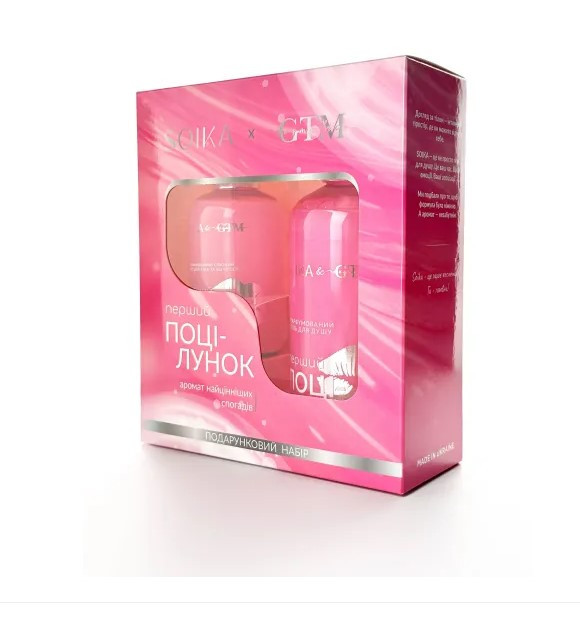містить два повнорозмірні засоби: гель для душу Soika "Перший поцілунок" 400 мл