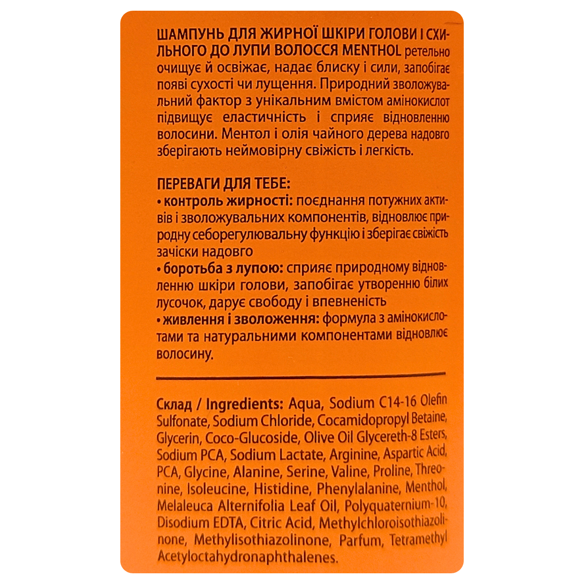 природний зволожувальний фактор з амінокислотами — підвищує еластичність, відновлює волосину.Кому підходитьЦей засіб ідеальний для:жирної шкіри голови;