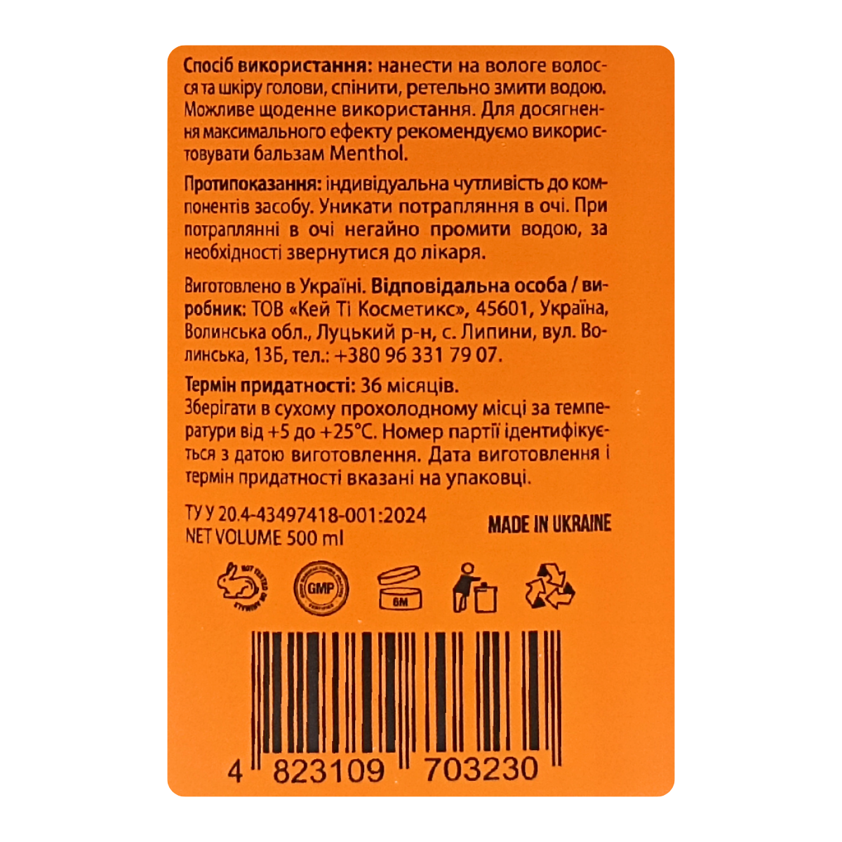 Шампунь для жирної шкіри голови і схильного до лупи волосся Barber Blend Menthol, 500 мл