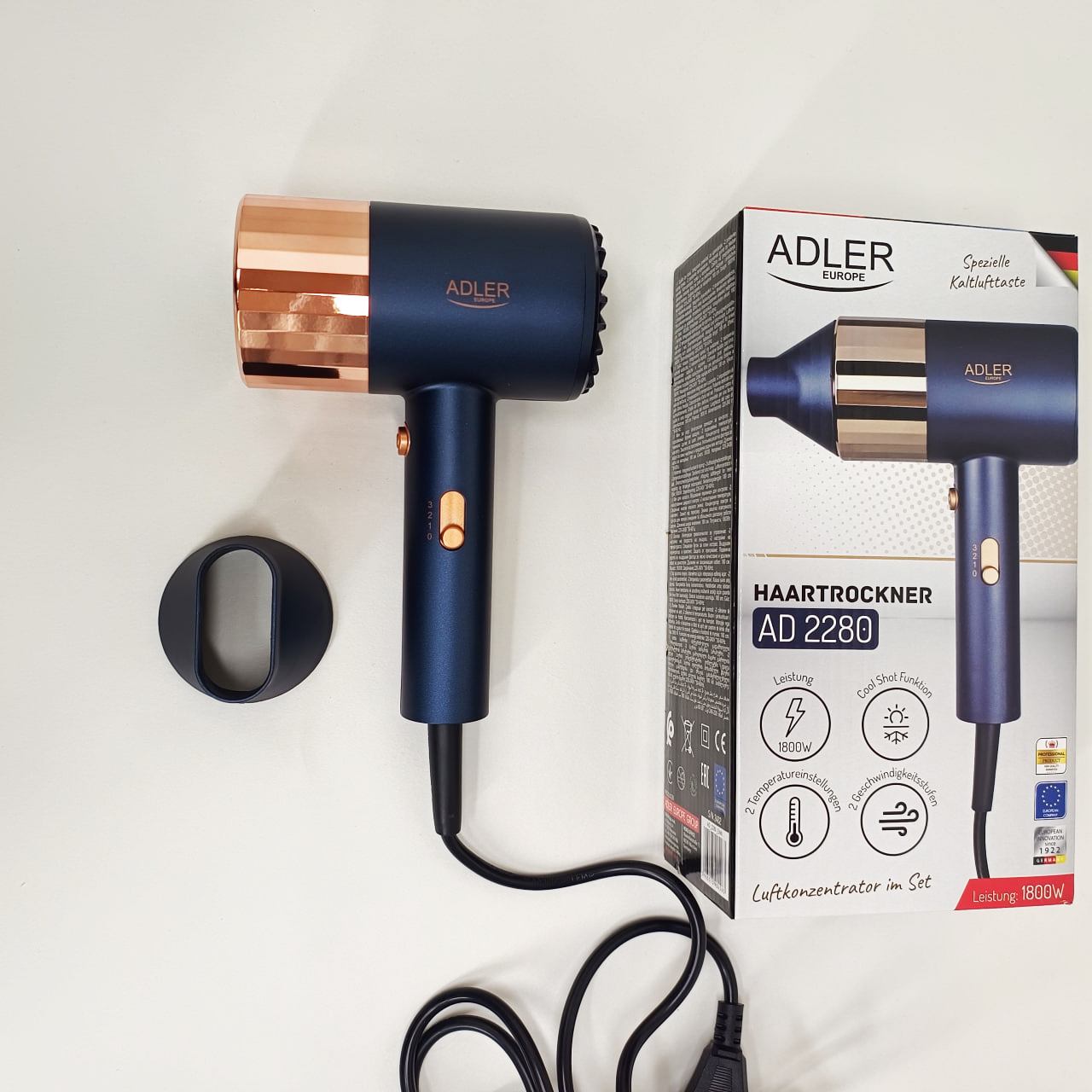 Фен Adler AD 2280 1800Вт 2 швидкості 3 режими холодне повітря концентратор кабель 1,8 м