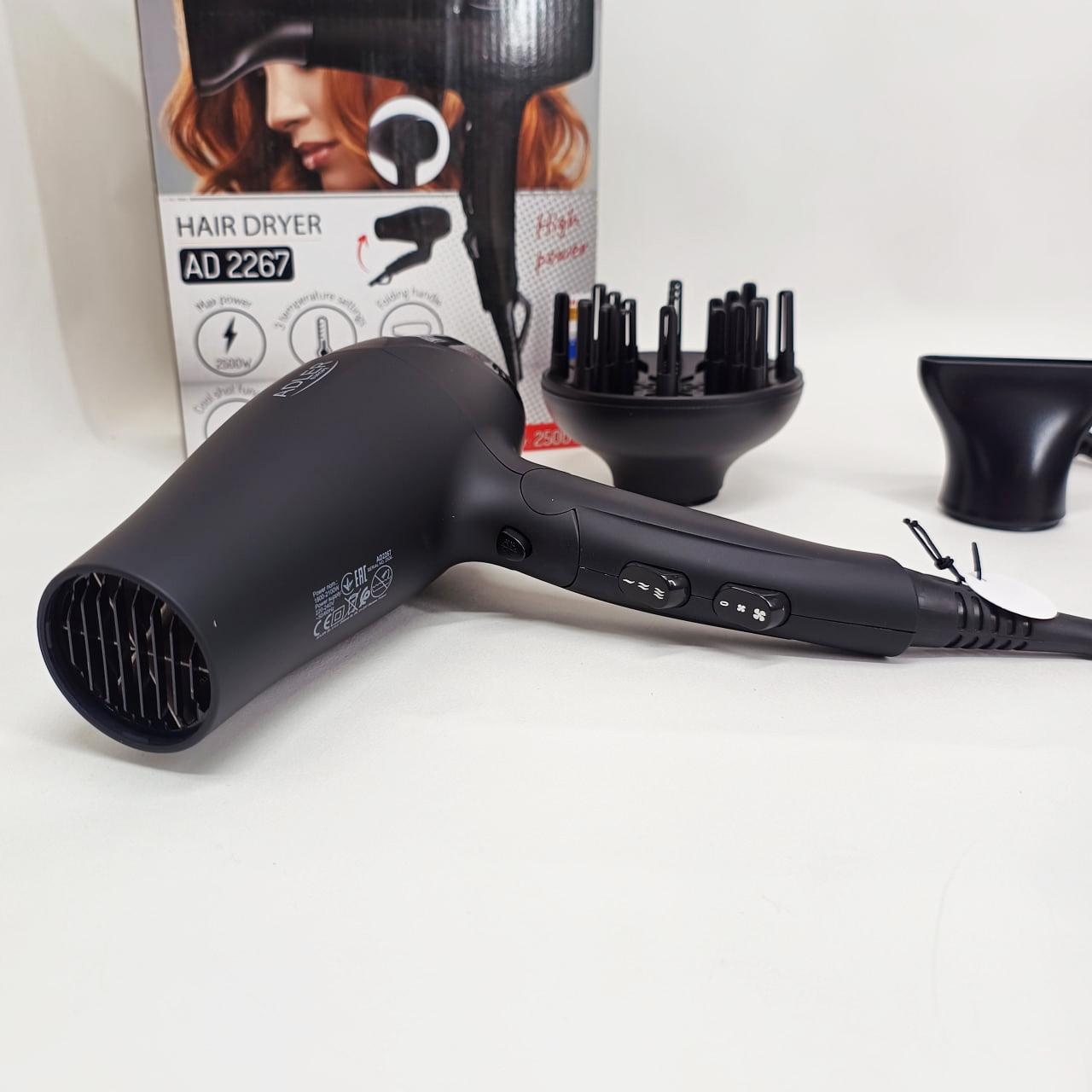 Фен AD 2267 з м’яким прогумованим корпусом – вибір більш вибагливих людей, які піклуються про своє волосся і хочуть, щоб воно виглядало красиво. Фен приємний на дотик. Фен оснащений регуляторами потужності та температури обдування, а також функцією холодного обдування. Концентратор та дифузор входять до комплекту, щоб розширити можливості сушіння та укладання волосся. Фен має прогумований корпус та сучасний дизайн. Сушарка оснащена підвісним кронштейном – це розумний спосіб зберігати сушарку, не жертвуючи місцем на полиці у шафі у ванній кімнаті.