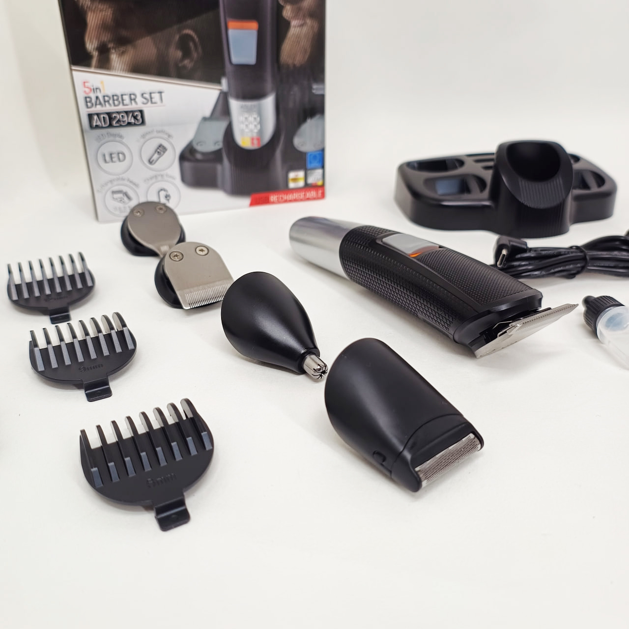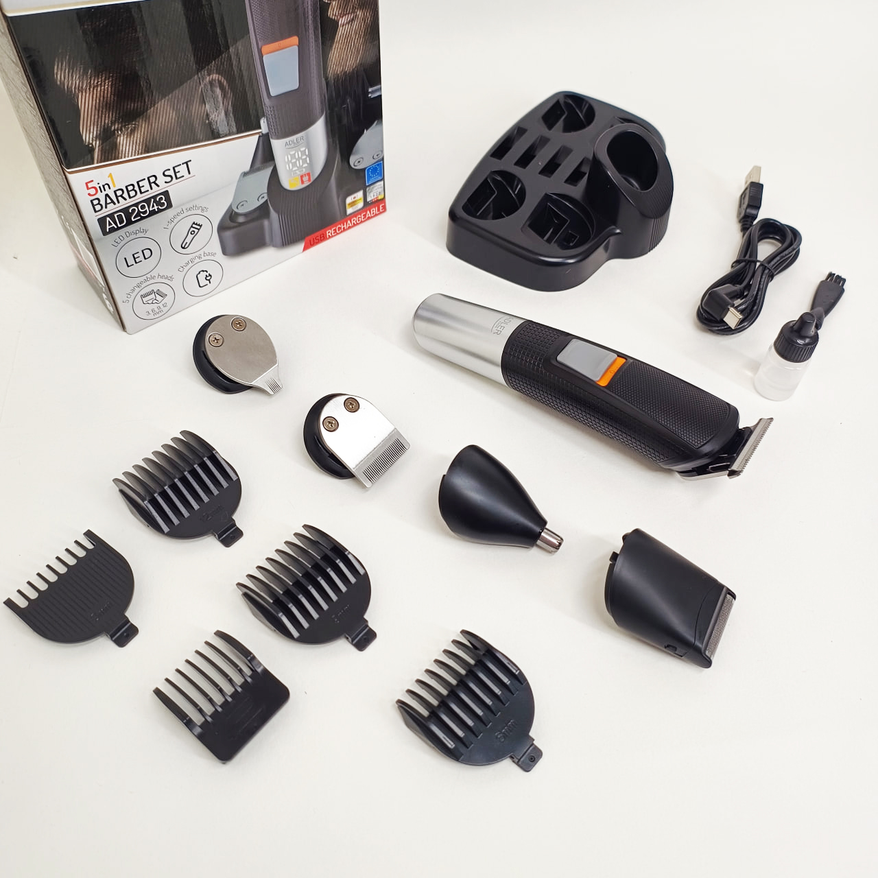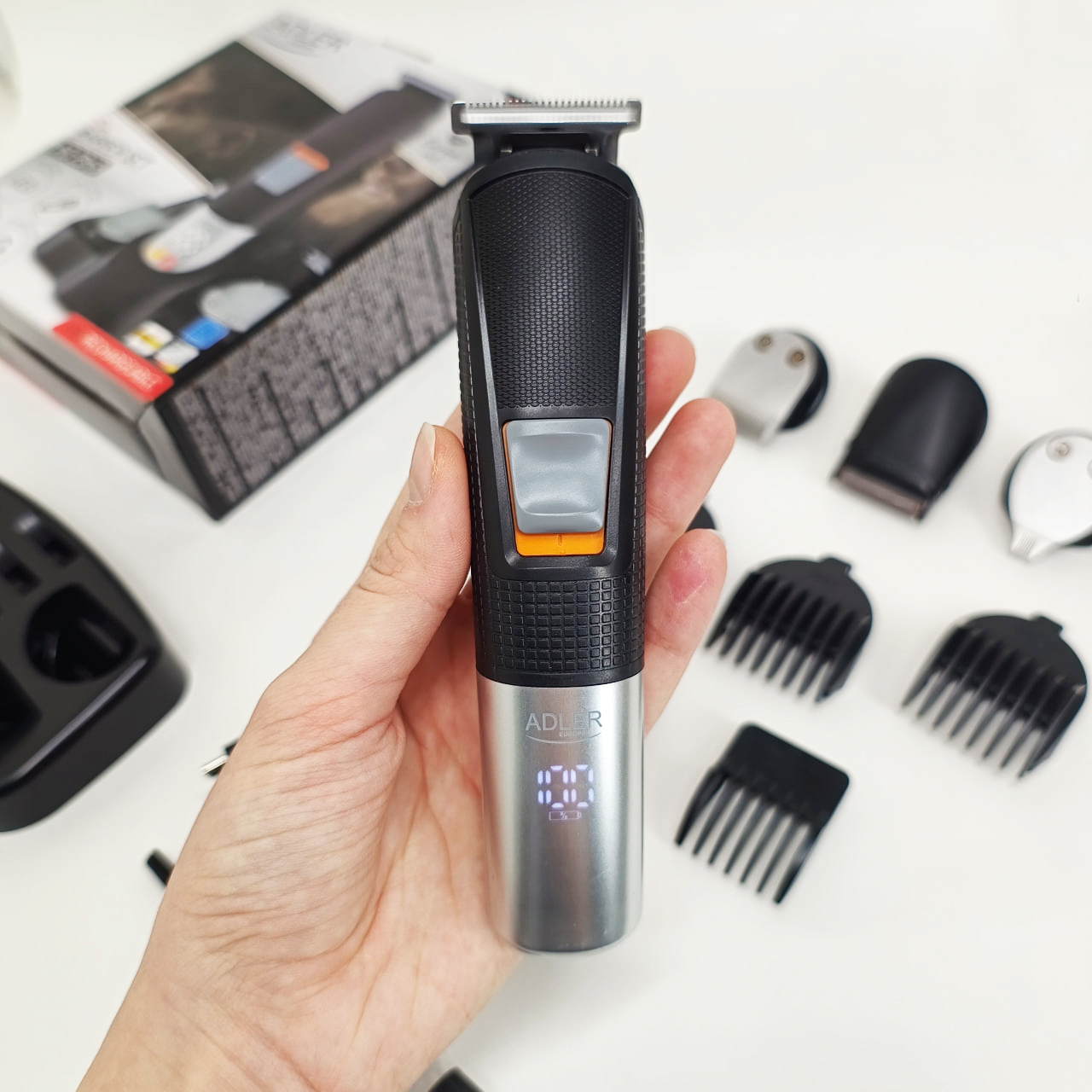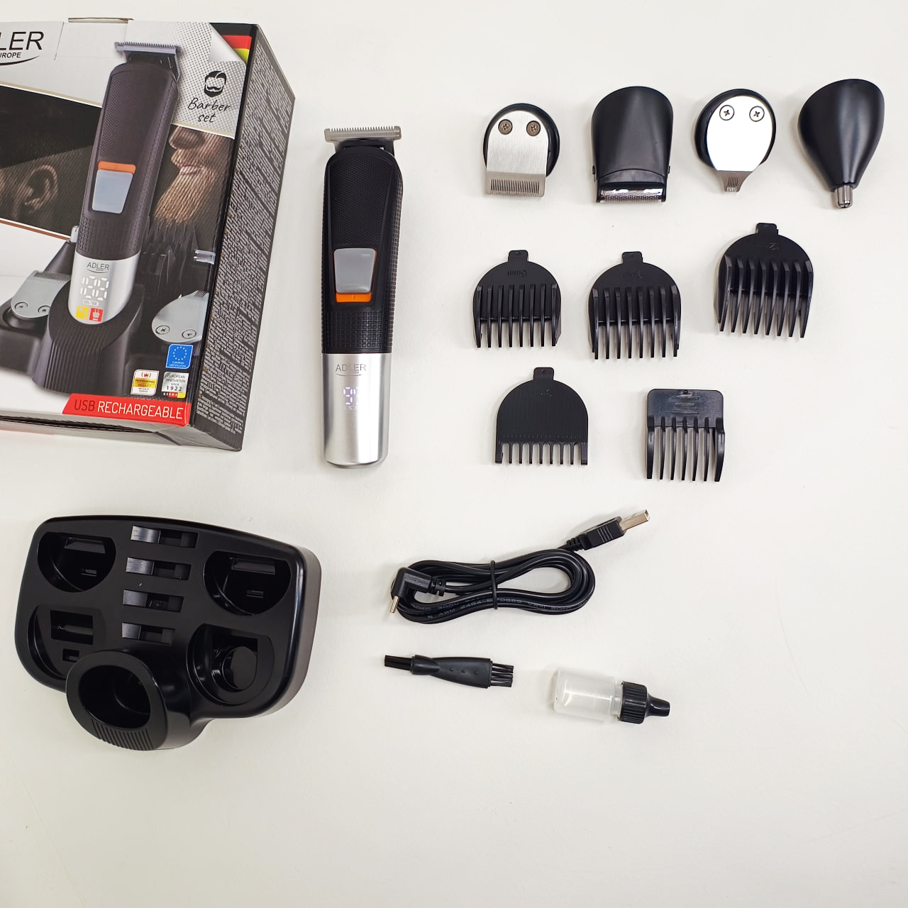Adler AD 2943 – універсальний набір по догляду за волоссям та бородою, що поєднує п’ять змінних головок в одному пристрої. Ідеальне рішення для чоловіків, які цінують ефективність та зручність щоденного догляду.