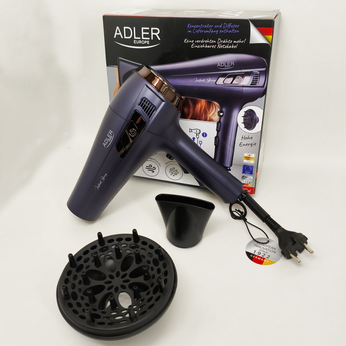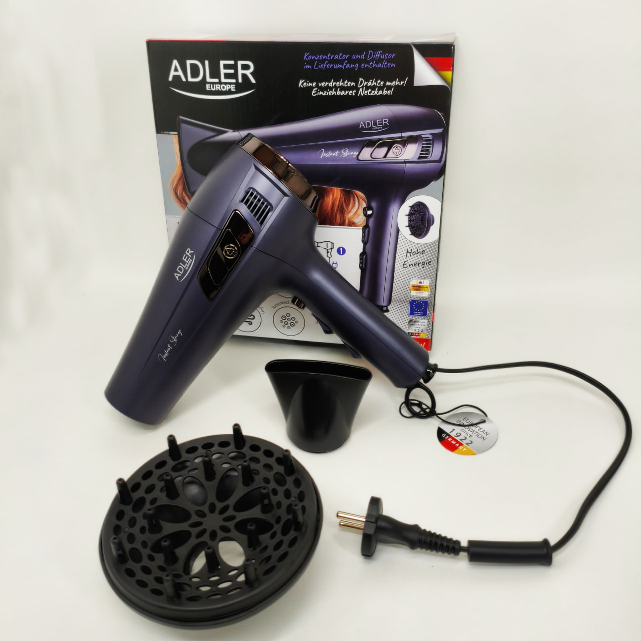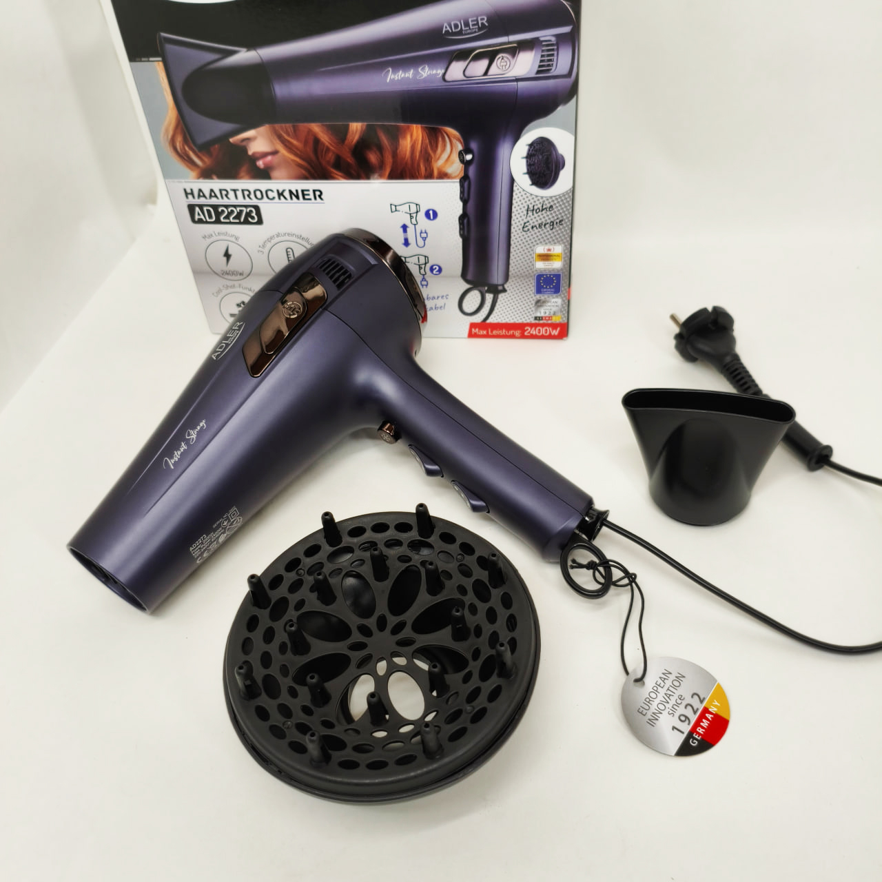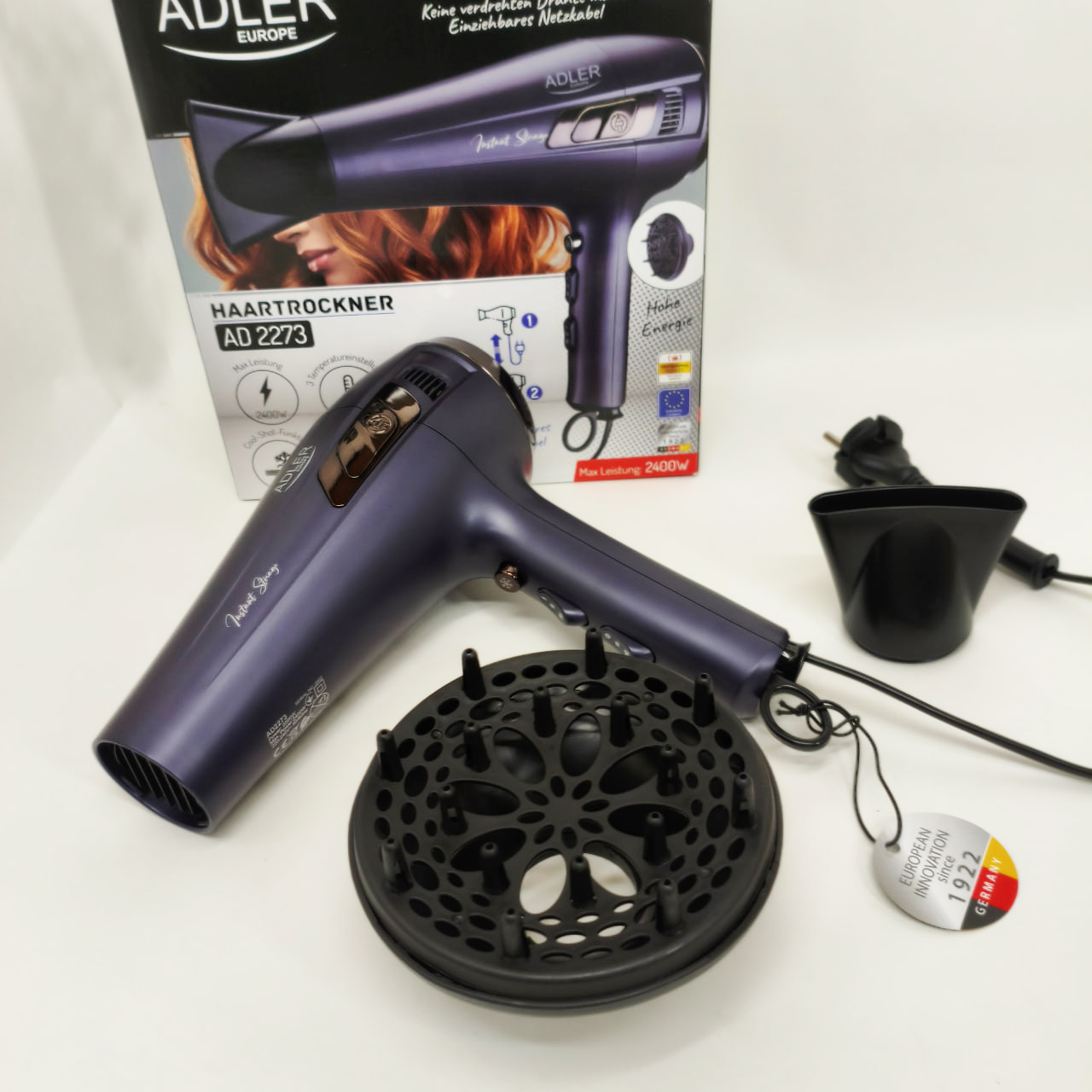 Познайомтеся з феном Adler AD 2273, який поєднує високу потужність, передові технології та комфорт використання. Завдяки шнуру, що втягується, технології іонізації і функції холодного повітря цей фен задовольнить усі ваші потреби в догляді за волоссям. Додаткові аксесуари, такі як концентратор повітря та дифузор, дозволяють створювати різні стилі.