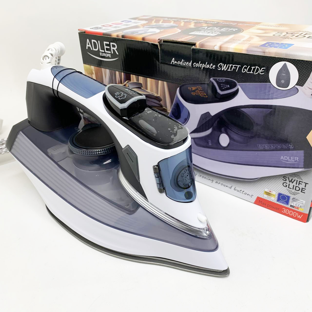 - Потужність: 3000 Вт – швидкий нагрів та ефективне прасування