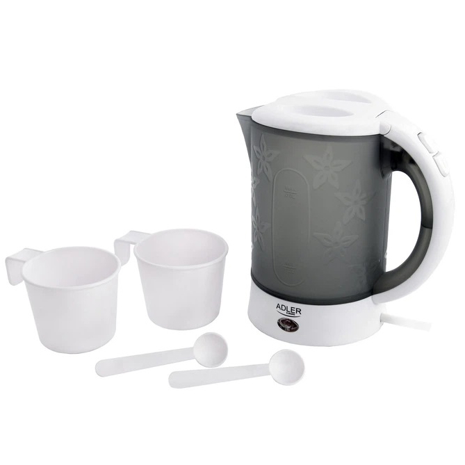 Электрочайник чайник с чашками и ложечками набор в дорогу Adler AD 1268 0.6Л 600Вт