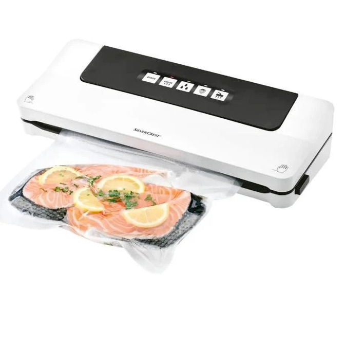 Вакуумний пакувальник Silver Crest SV 125 C6 — повністю автоматизований прилад для пакування різних продуктів, призначений для інтенсивної експлуатації. Запаковані харчові продукти залишаються свіжими до п’яти разів довше (сповільнюється окиснення), зберігаючи всі вітаміни та поживні речовини. Вакуум зберігає продукти від морозного опіку при глибокому заморожуванні.