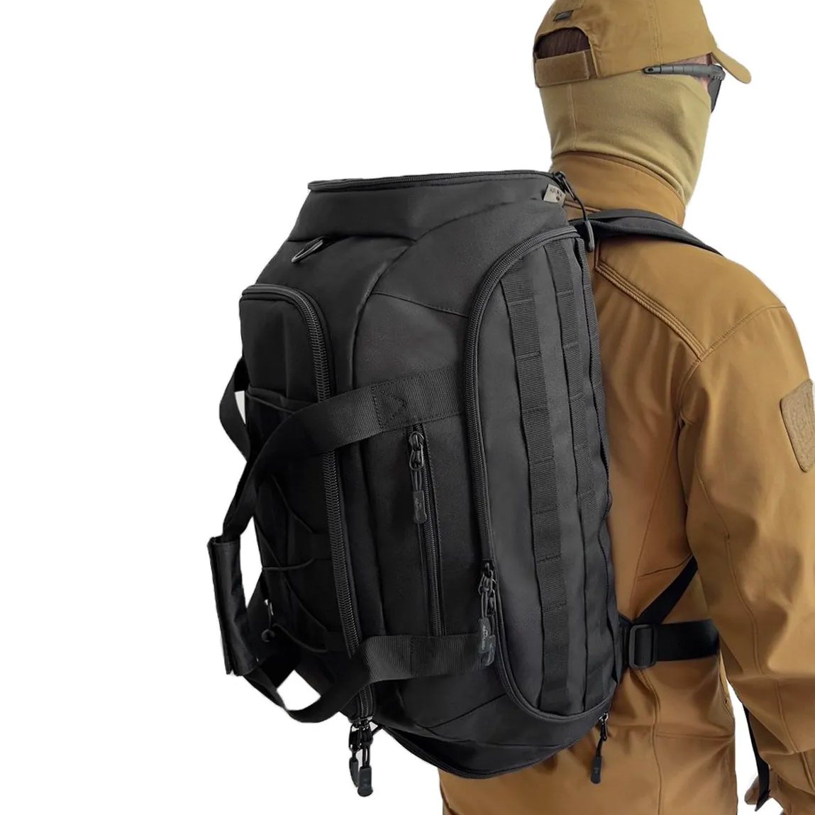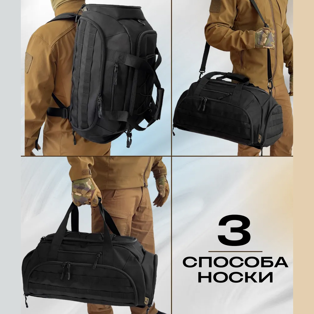 Тактична дорожня сумка-рюкзак 2 в 1 — зміцнена, універсальна чорна