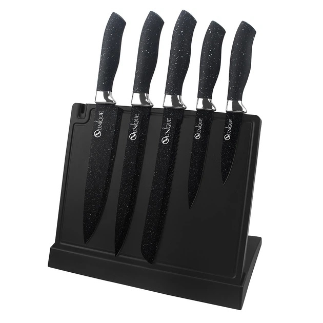 Набір ножів UNIQUE UN-1841 з нержавіючої сталі з підставкою + точила 6 предметів