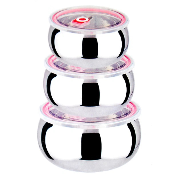 Судочки виготовлені з нержавіючої сталі, відрізняються розмірами. Кришки зроблені з силікону і щільно прилягають до судка, що не дає їжі обвітритися в холодильнику, при перевезенні рідина не проливається.