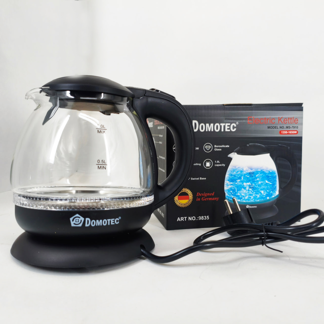 Скляний електрочайник Domotec MS-7910 1л 1650Вт з LED підсвічуванням